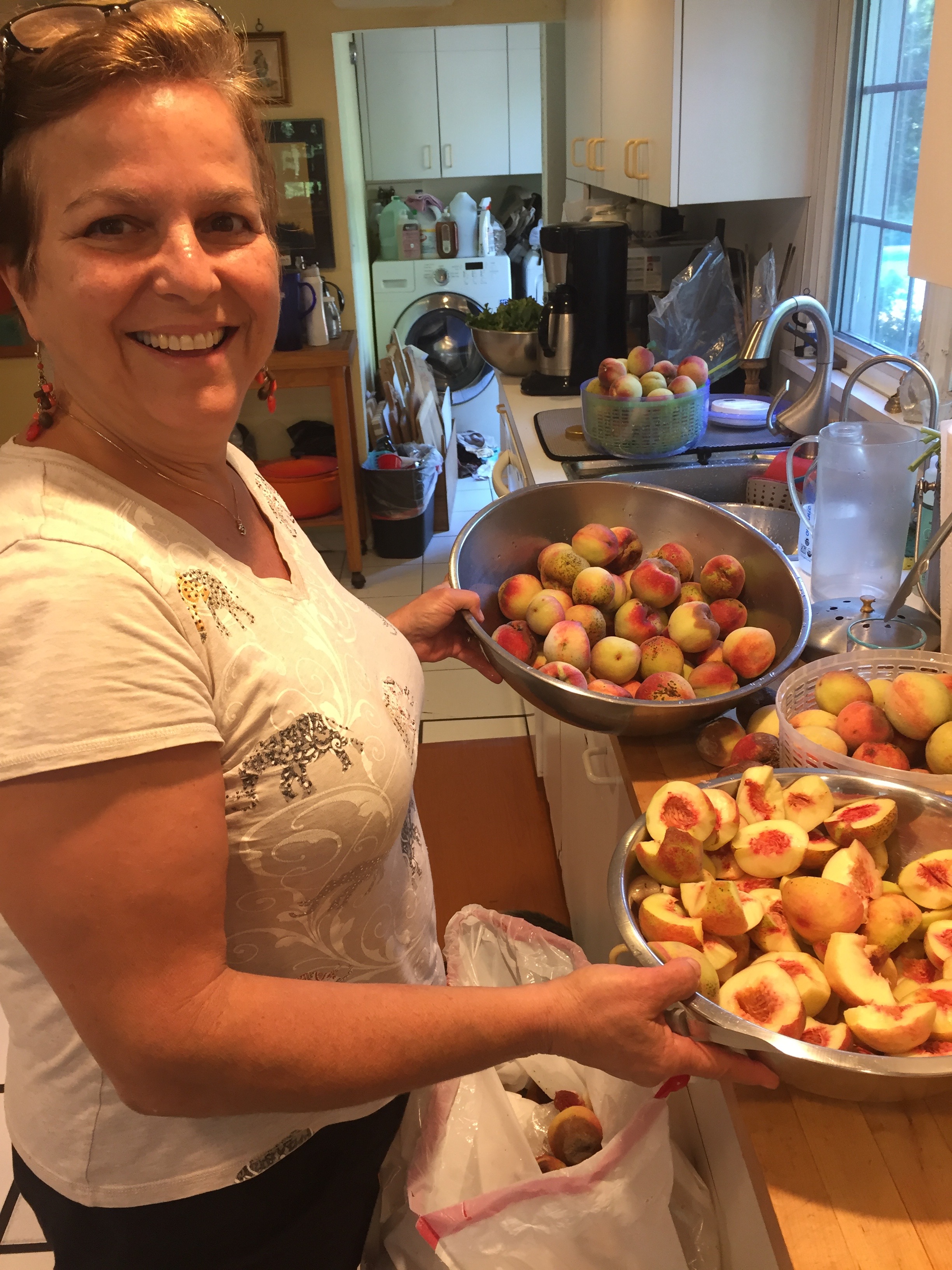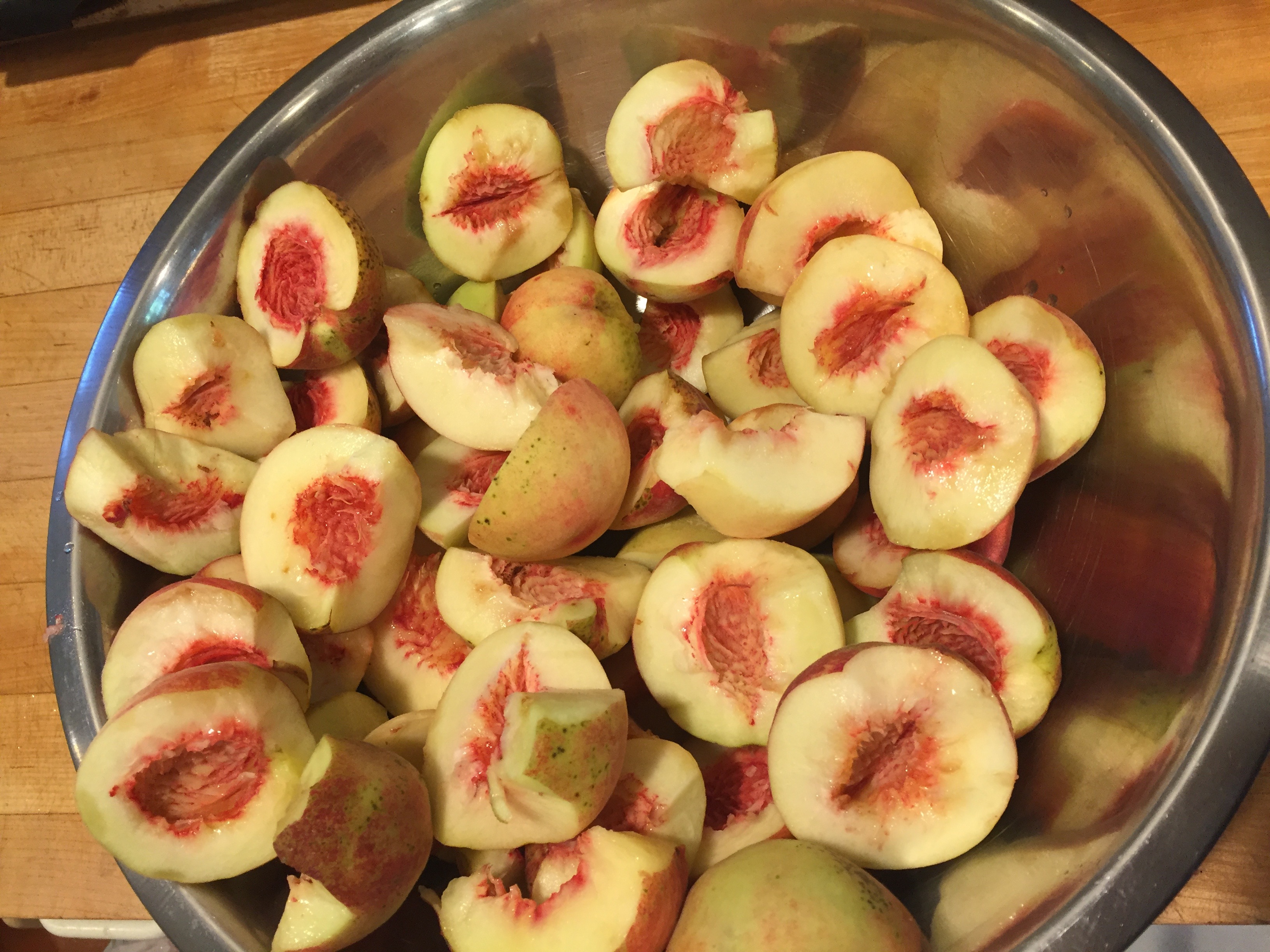 which rots many of the peaches, so harvesting the good ones is a challenge. I have to cut around many bad spots, but it’s worth it! The flavor and texture of these peaches is sublime! They are sweet, juicy and addictive!