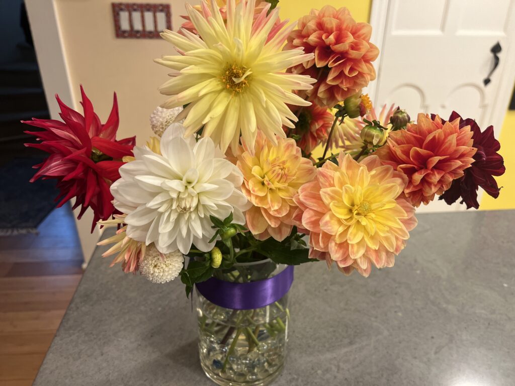 My daughter loves dahlias! She requested that we expand our flower garden this year and create a Dahlia garden. I’ve always been resistant to planting bulbs that need to be dug up in the Fall and stored over the Winter, only to replant again in the Spring, but I must admit, I am now a convert! The Dahlia’s have been blessing us with gorgeous flowers since August, and the beauty continues. We enjoyed planting the bulbs together, and we will dig them up together when the time comes, but in the meantime, the flowers keep coming!!