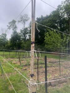 For the second year in a row, and I assume I will need to do it every year going forward, I put up a deer fence all around my garden. The deer have discovered our property, and the only way to protect my vegetables is to put up a deer fence. It doesn’t have to be an ugly, heavy duty fence. I made mine with metal stakes, bamboo poles, and thin polyester cord. The thin cord works well because the deer can barely see it, but they can feel it when they come up to it and don’t know how to get around it. We were shown how to use a Constrictor Knot around each pole, so that you can pull it tight and it won’t loosen up on you. The bottom section of my fence is electric to keep the rabbits and squirrels out. For the deer fence, we started in one corner and went around the entire garden, tying the knots as we went. When we got to the end, we used another bamboo pole that we could velcro to the beginning pole, so that we had a way to get into the garden without climbing through. It works like a charm!
