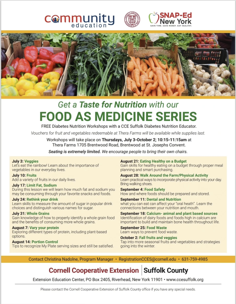 Thursday July 24th – Food is Medicine Series Hosted by Cornell Cooperative Extension
