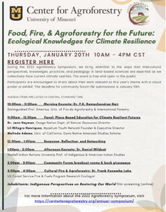 January 20th, 10-4pm, Join The Center for Agroforestry’s Annual Symposium; Food, Fire, & Agroforestry for the Future: Ecological Knowledges for Climate Resilience