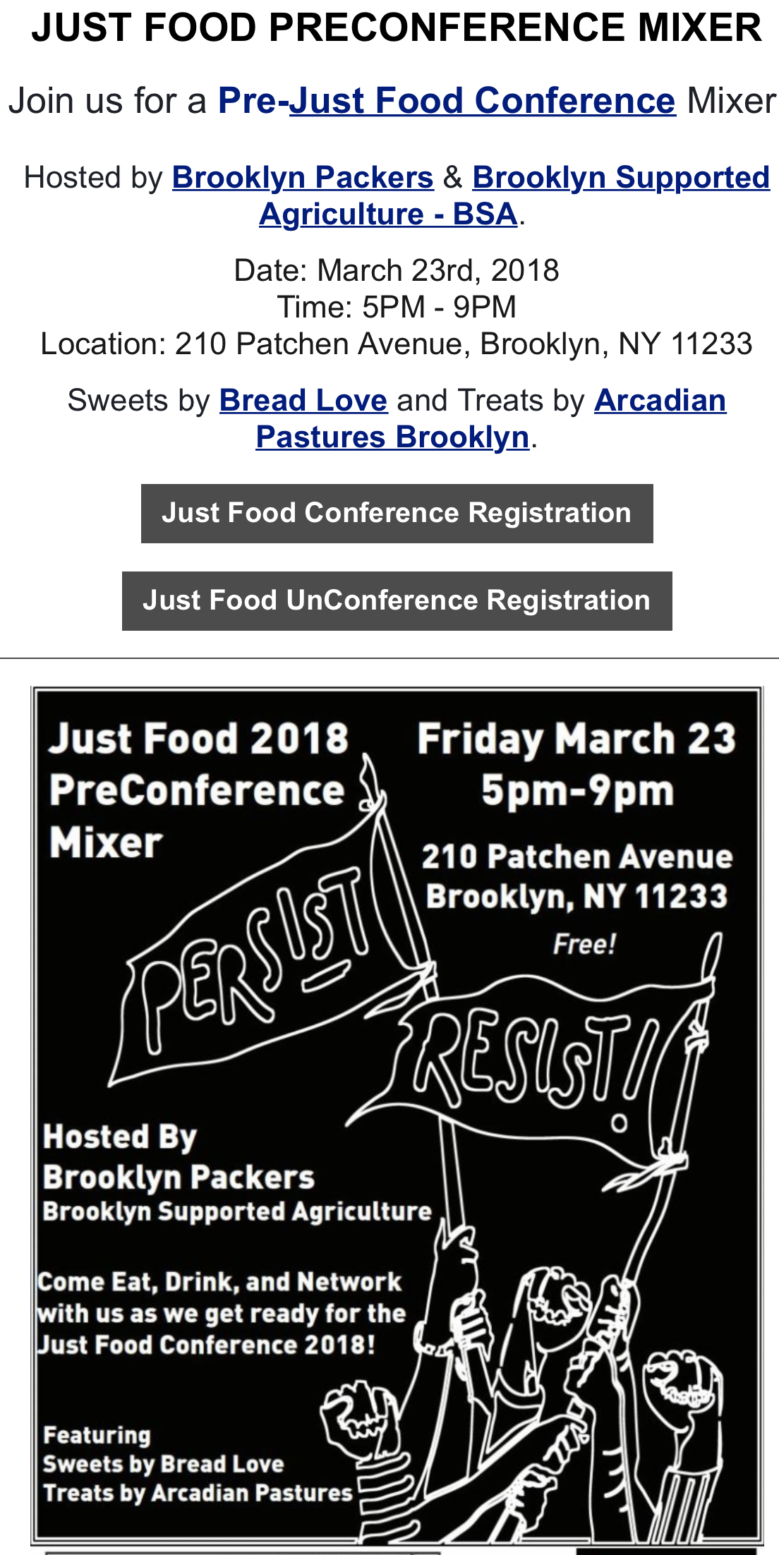 Hosted by Brooklyn Packers & Brooklyn Supported Agriculture – BSA. Sweets by Bread Love and Treats by Arcadian Pastures Brooklyn.