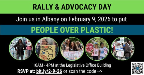 On Monday, February 9, please join us in Albany to help pass the Packaging Reduction and Recycling Infrastructure Act in the state Assembly. This landmark waste reduction bill will address the largest stream of waste going to landfills and incinerators: single-use packaging. It will make packaging safer by getting toxic chemicals out, make big brands pay to clean up their trash, and invest in robust and equitable reuse and recycling infrastructure. And, it will reduce emissions by addressing wasteful single-use plastics that are made of oil and gas!​