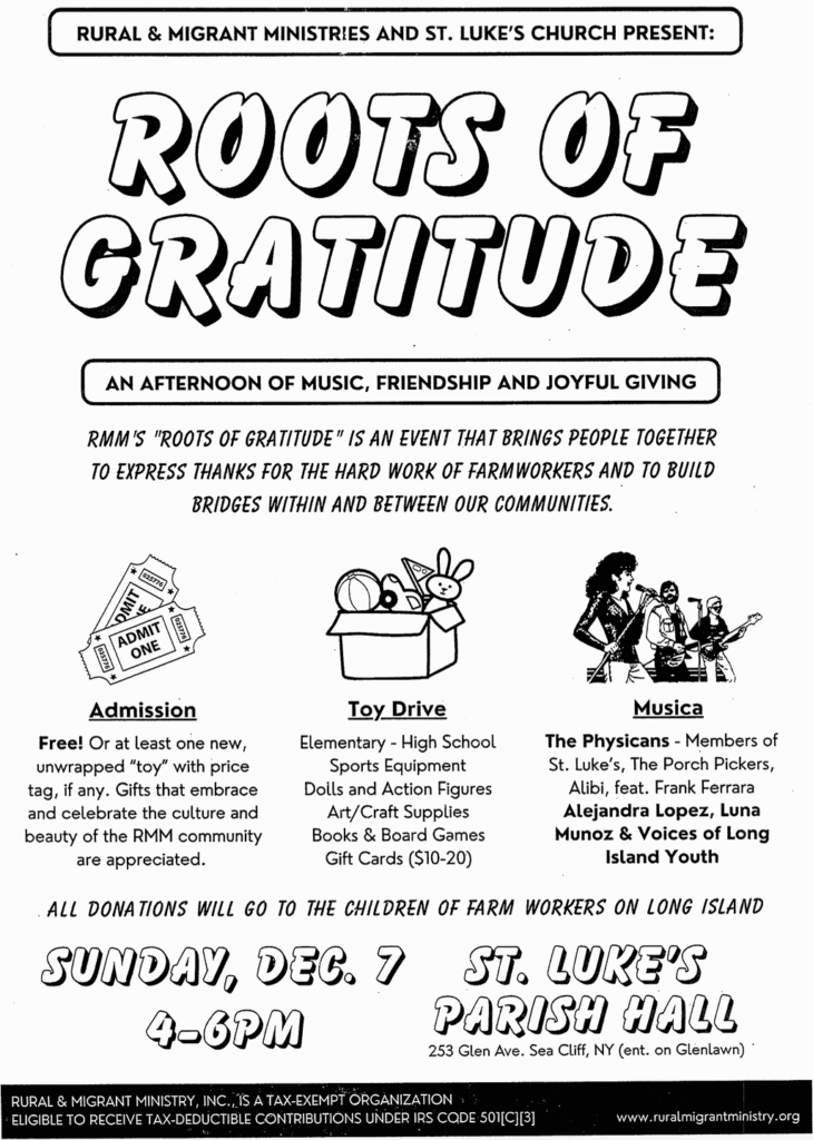 *Rural Migrant Ministry Concert + Toy Drive at St. Luke’s Episcopal Church in Sea Cliff- December 7, 4-7