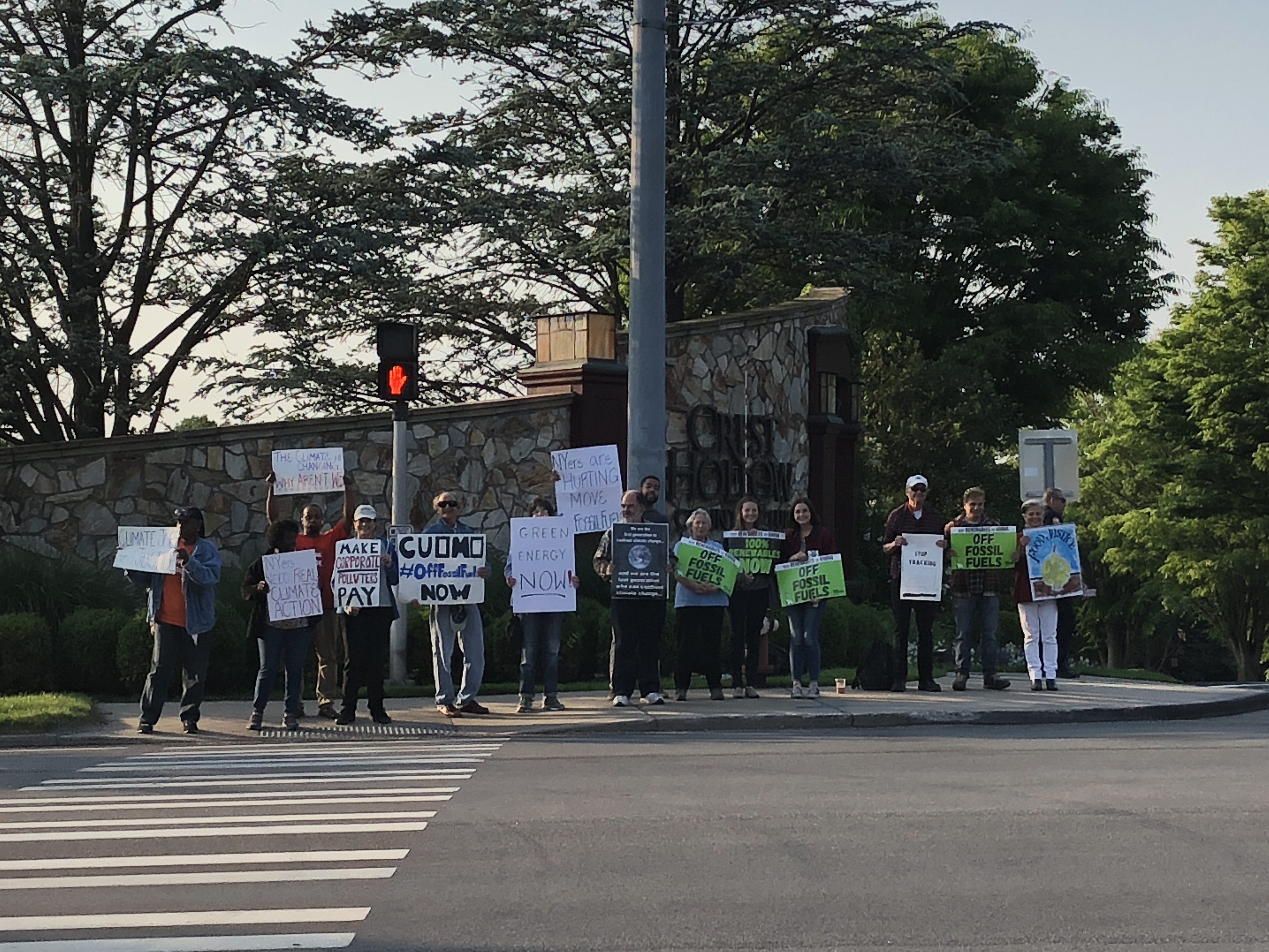 vigilant. We can’t give up! When Governor Cuomo drove past the group of us outside the Crest Hollow Country Club this past Wednesday, protesting his support of the fracking infra-structure, I know he saw us, and he knew everyone else driving past us, saw us! Imagine how much more powerful it would have been if there were hundreds of us, and not just 20 of us. I want to send a big thank you the the folks at NY Communities for Change and Food and Water Watch for helping to organize the rally, and I hope to see more of you in the coming months, standing in solidarity with the organizations working to protect our environment and our freedoms.