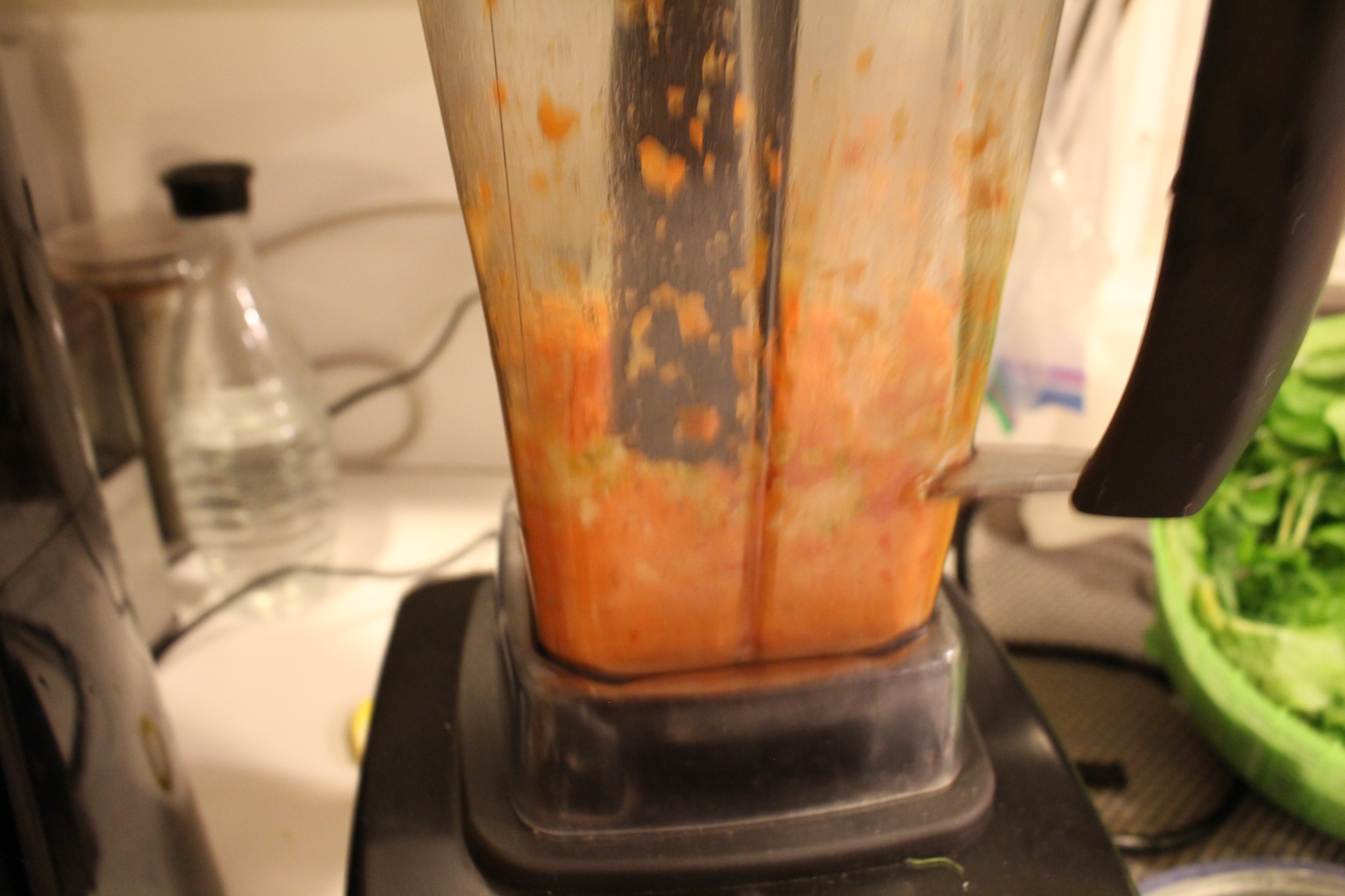 3. In blender/ bullet or VitaMix, puree onion, carrot, celery, and salt.