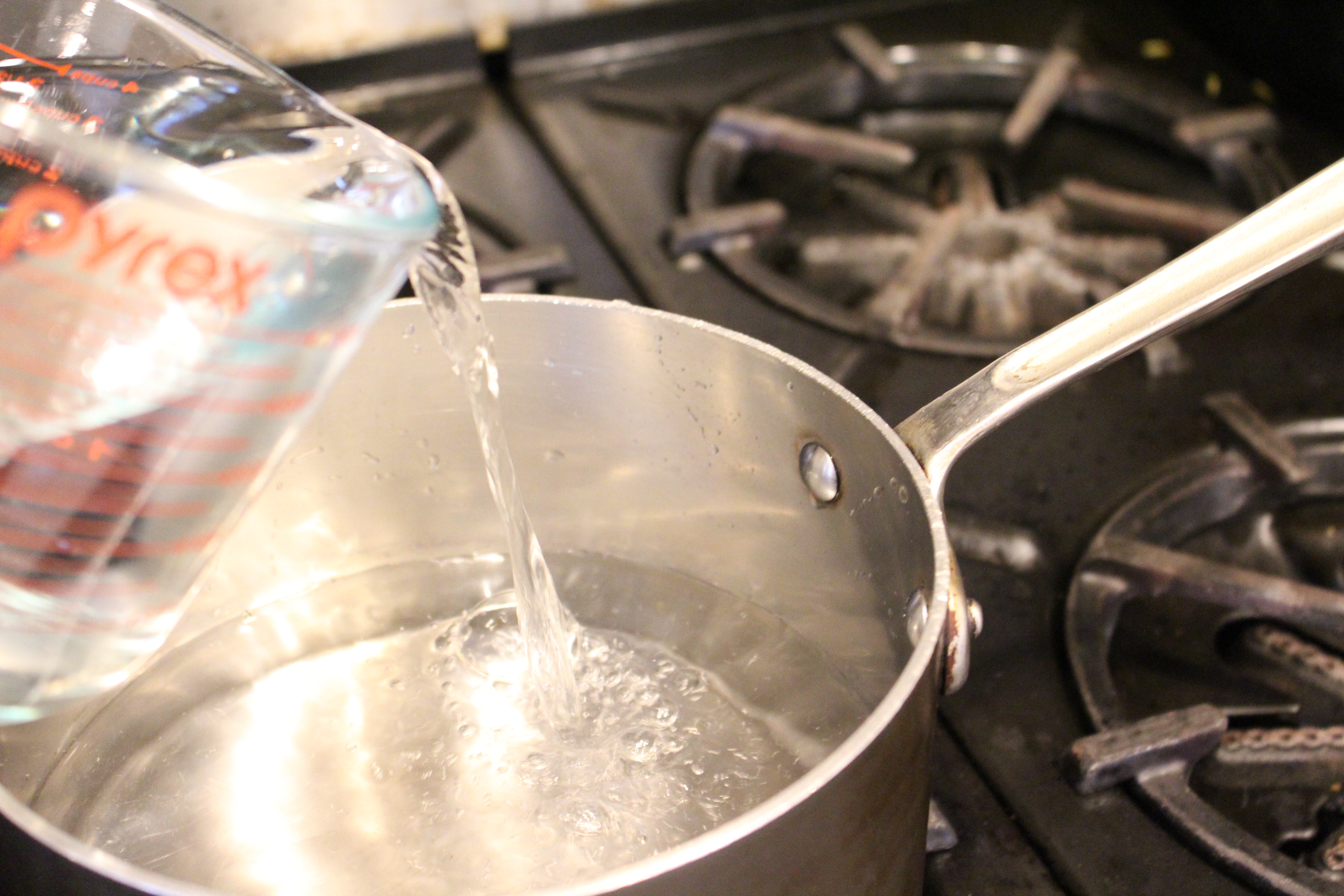 - Fill a large pot with 8 cups of filtered water. Add garlic and ginger, and bring to a boil.