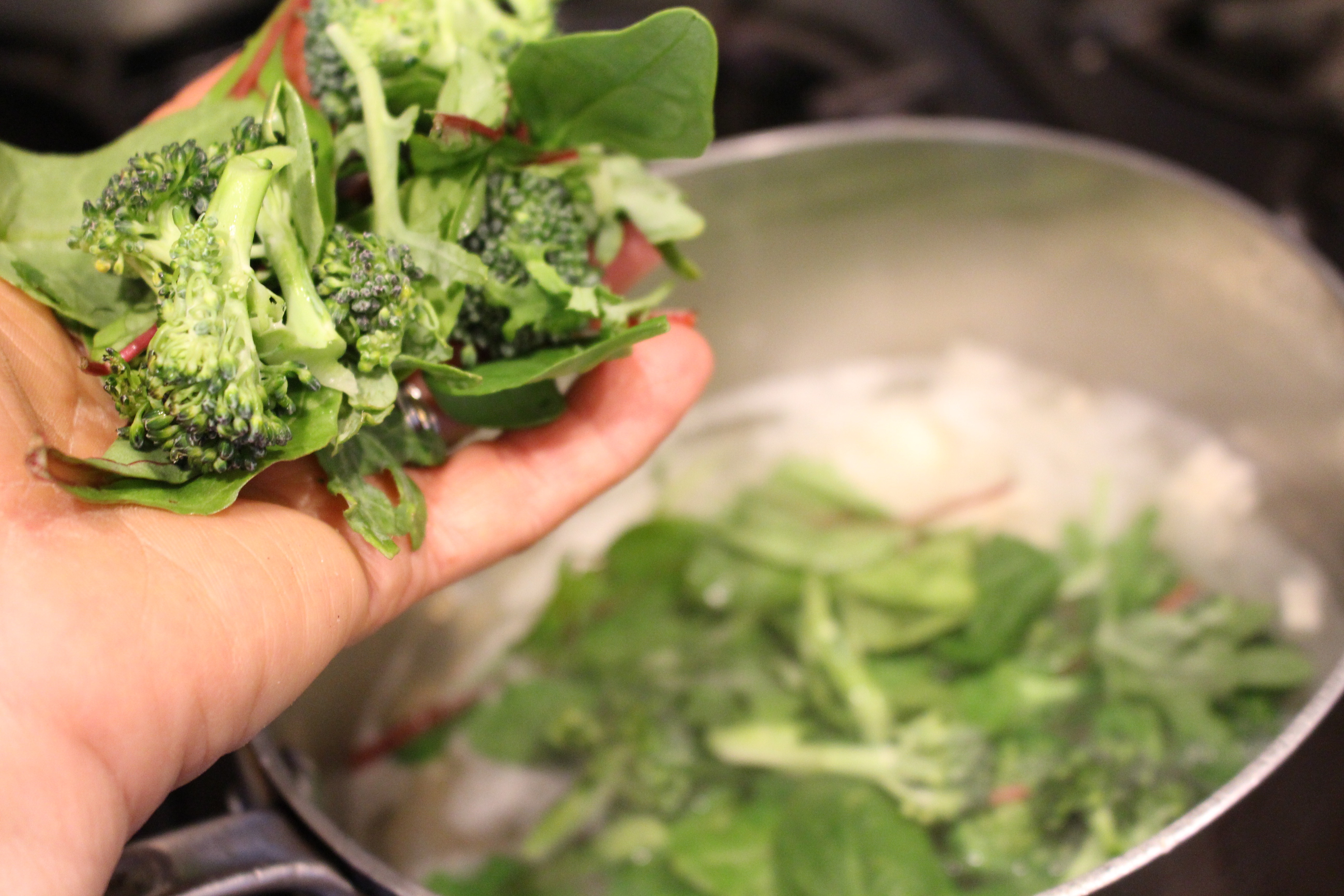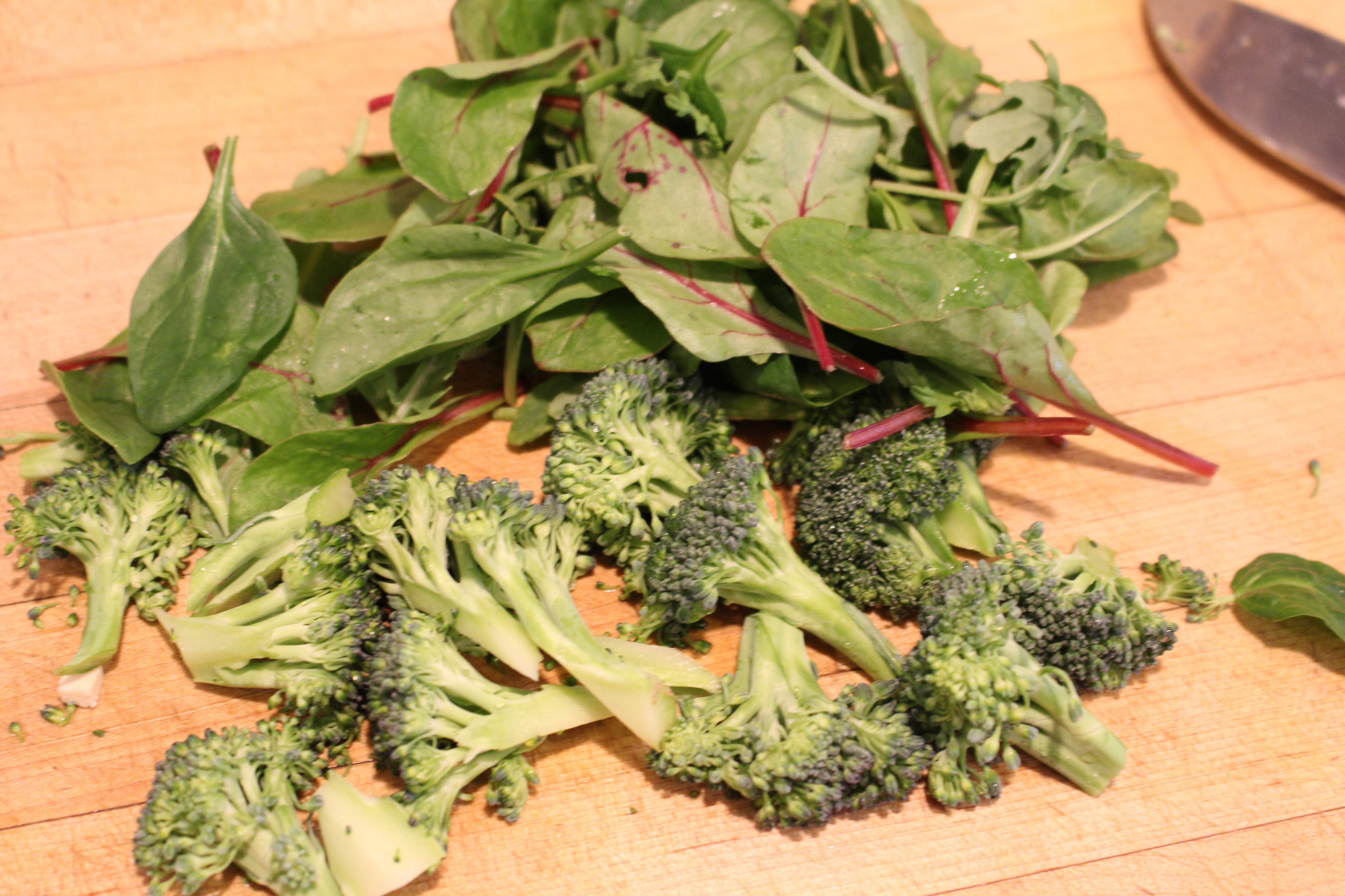 - 2 cups mixed greens, (baby spinach, kale, swiss chard, bok choy etc.)