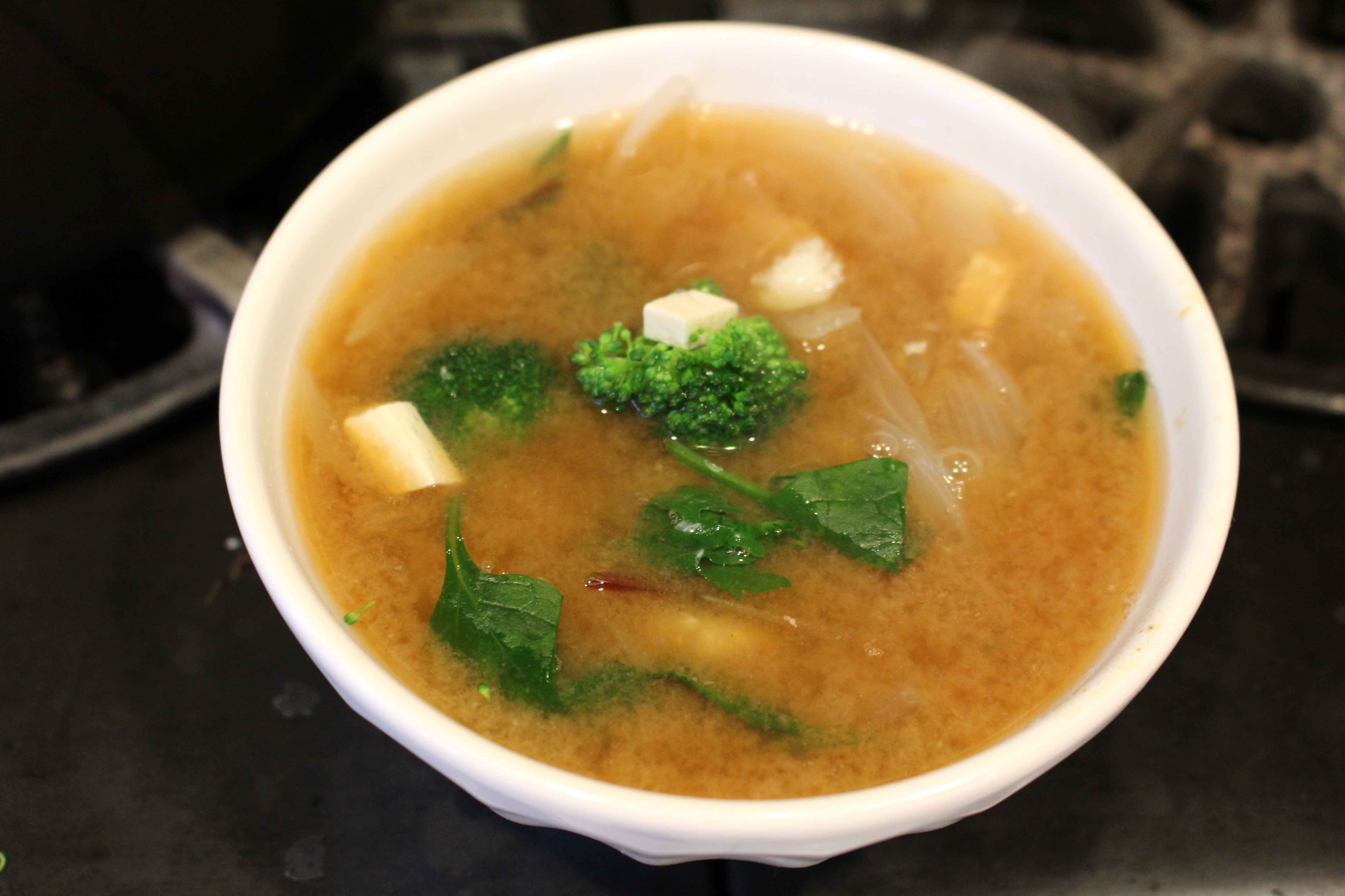 - 2 large teaspoons of Miso per bowl (white or red miso) according to taste