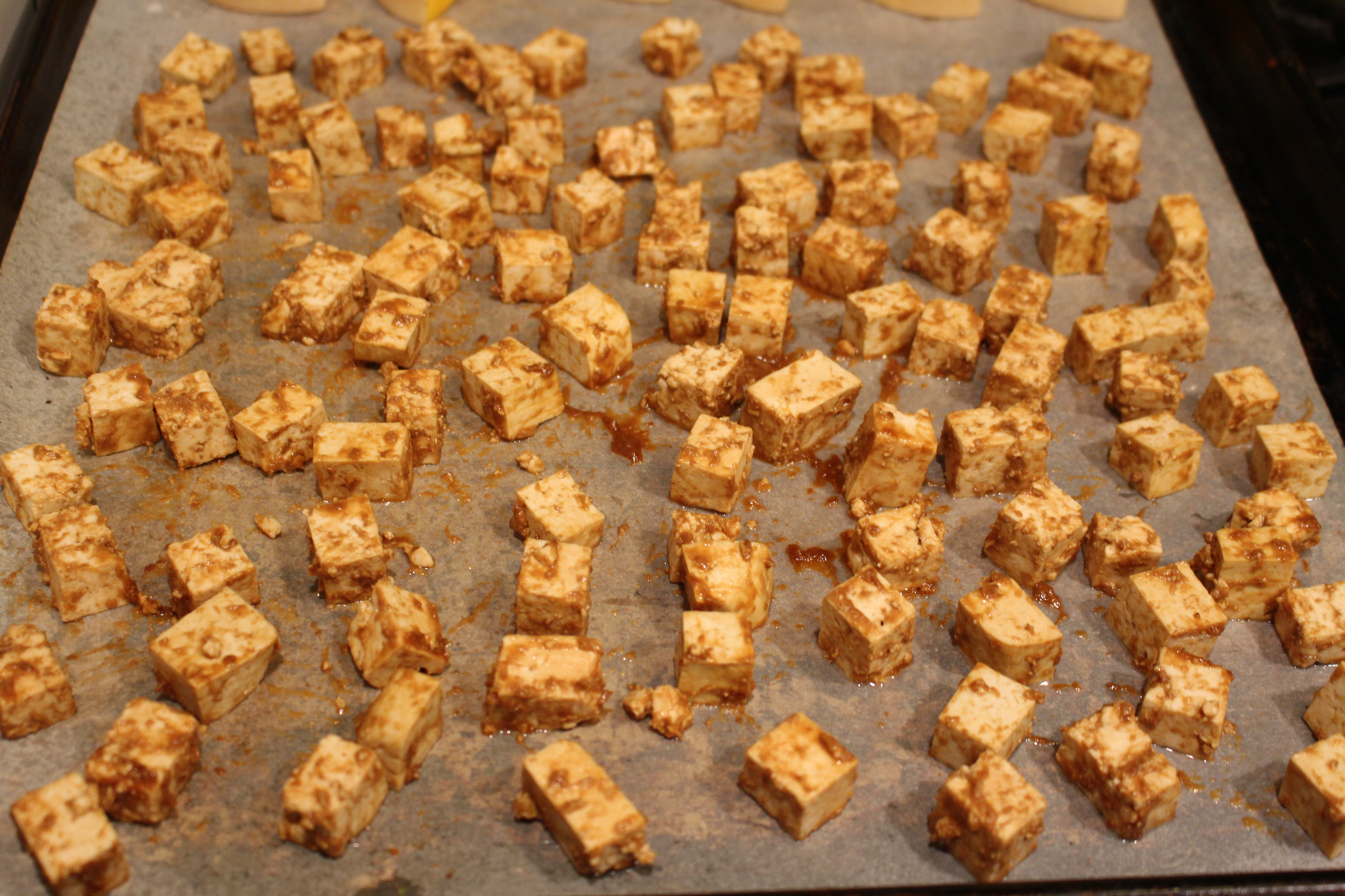 - 1- 20 oz. firm cake of Tofu, cut into cubes