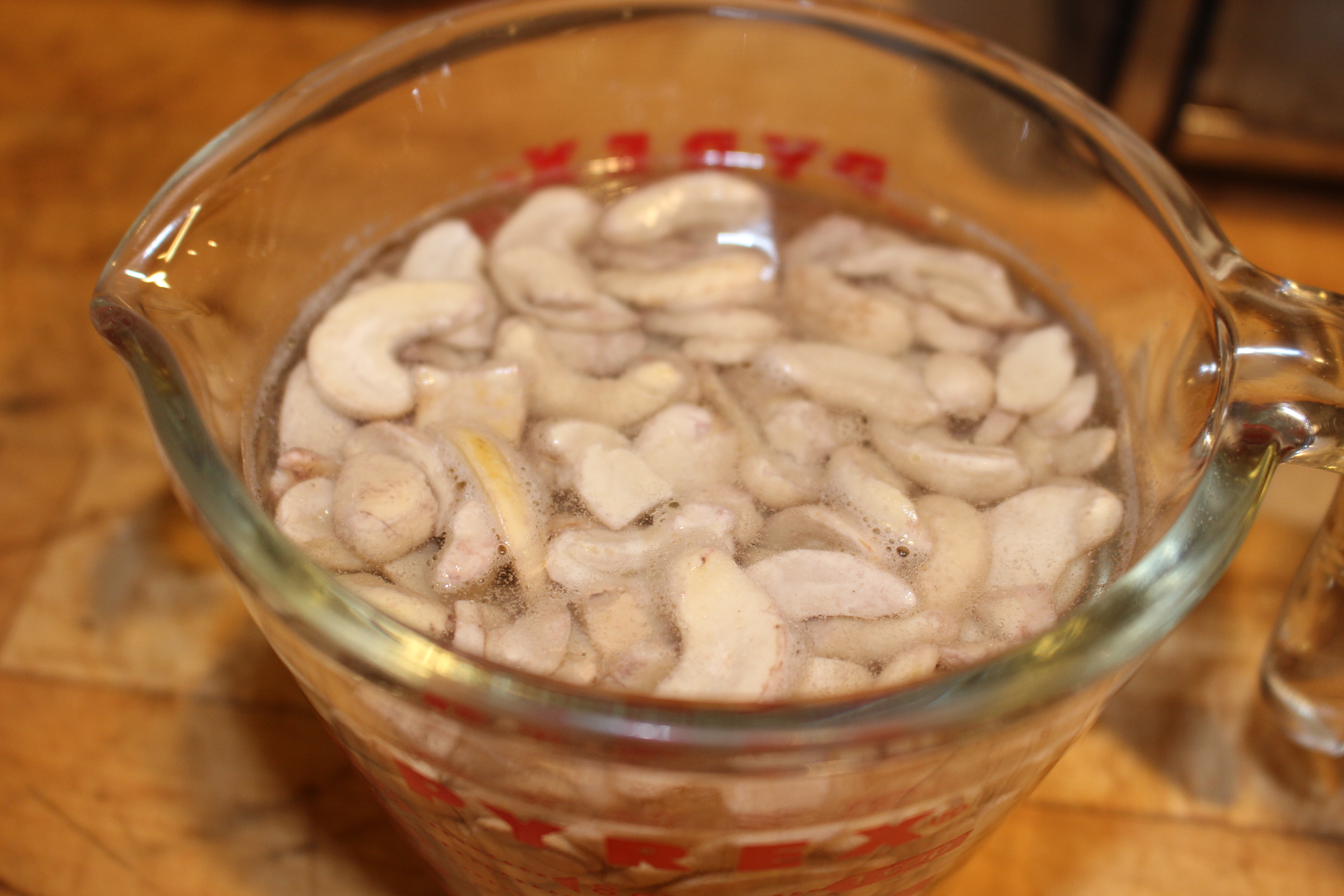 - In a food processor, mix the drained cashews with ½ cup of fresh water. Pulse until completely smooth, scraping down sides of food processor to incorporate all of the cashews.