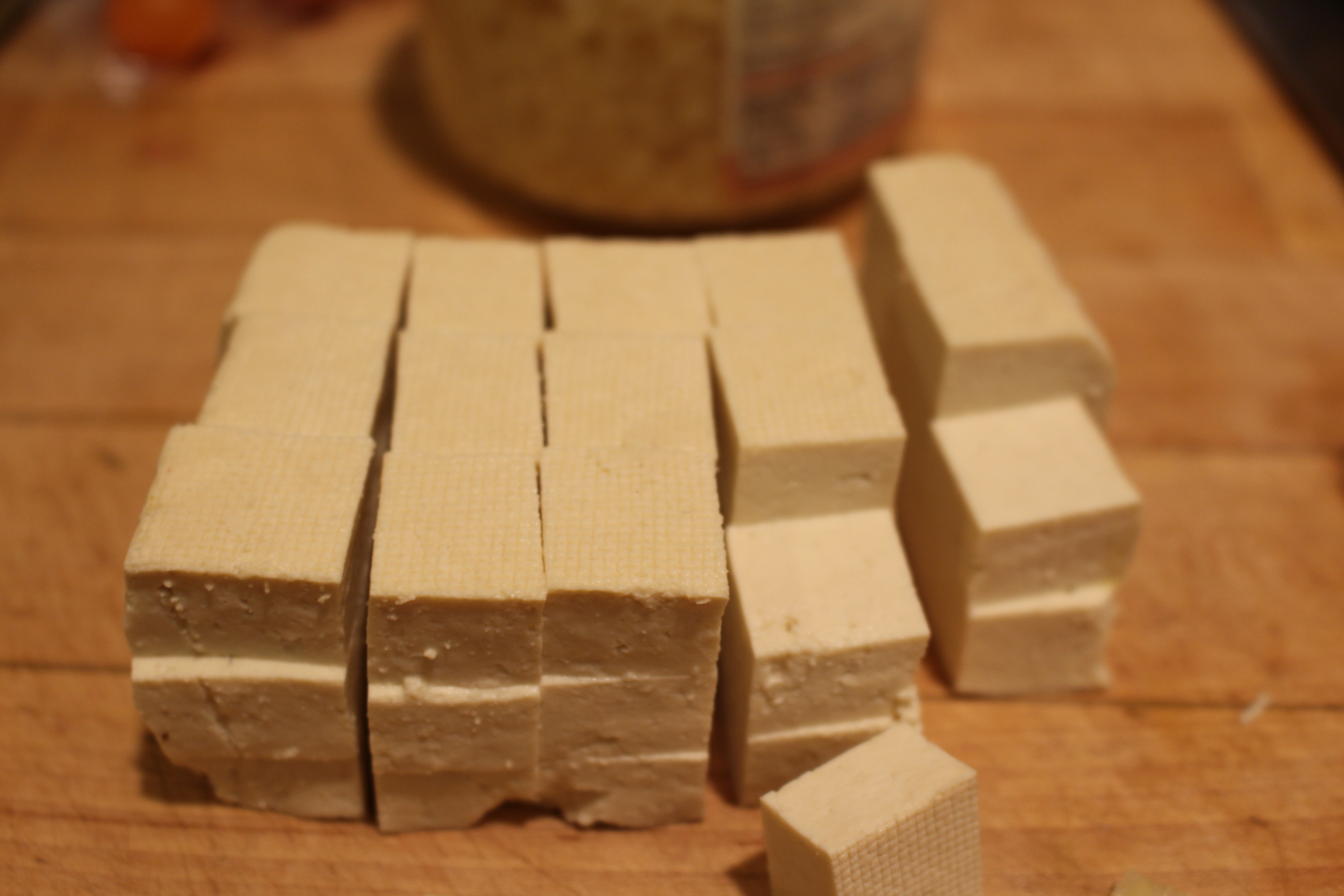 1 cake extra firm organic tofu, sliced into ¾” cubes