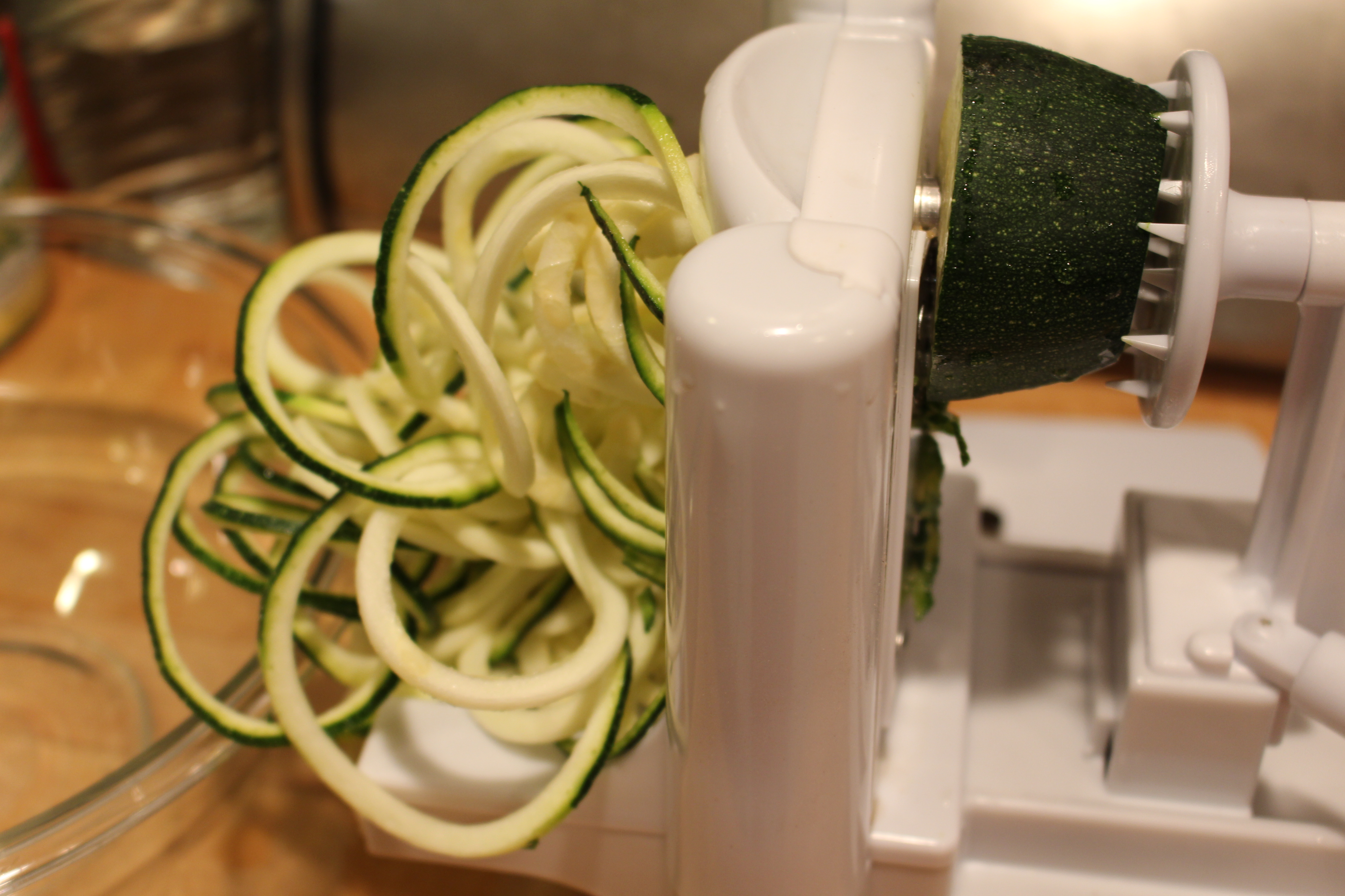 1. Start by spiralizing or shredding the zucchini and carrots.