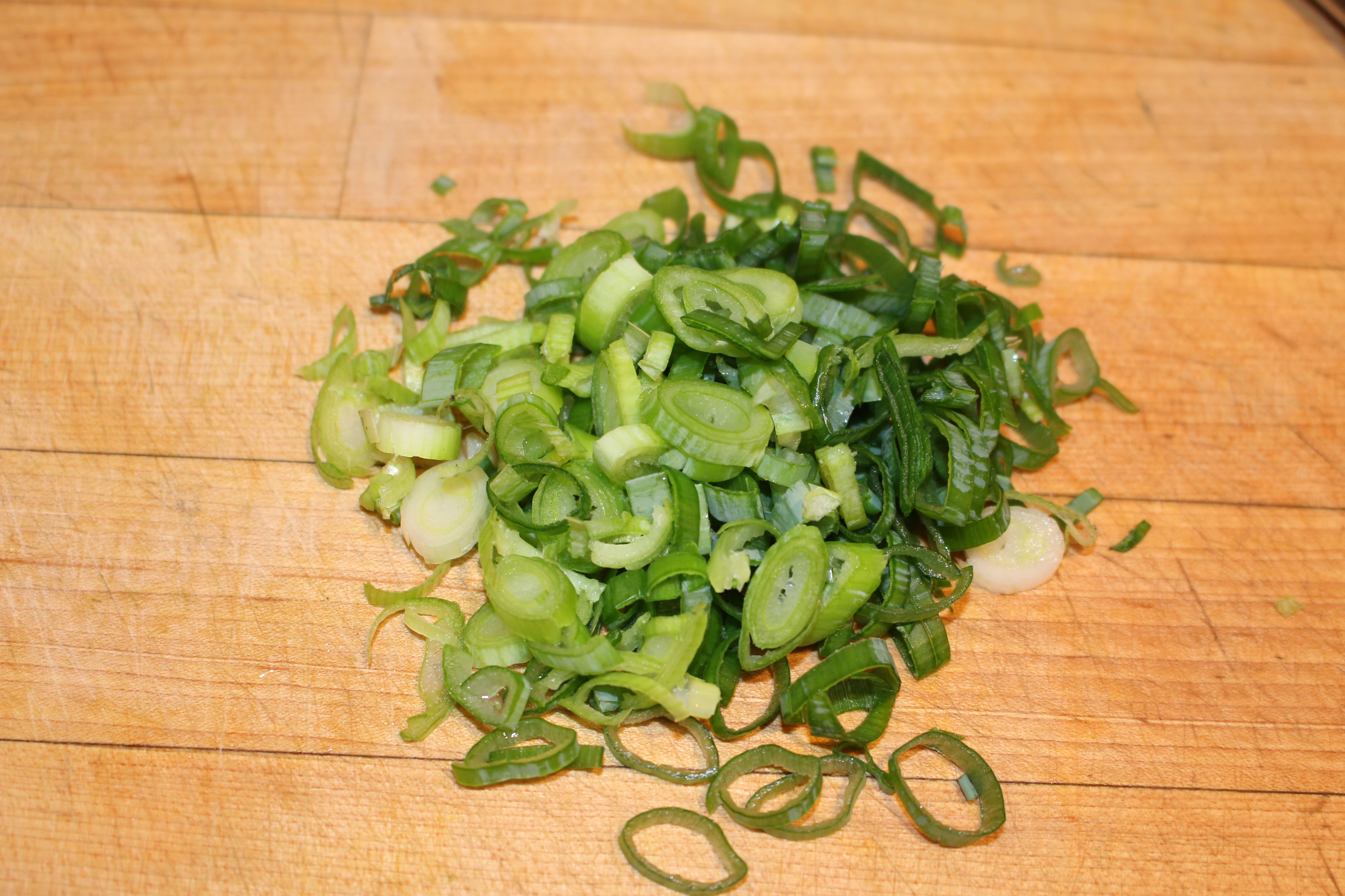 3. In large bowl, combine the zucchini, carrots, green pepper, scallions, parsley, and peanuts.