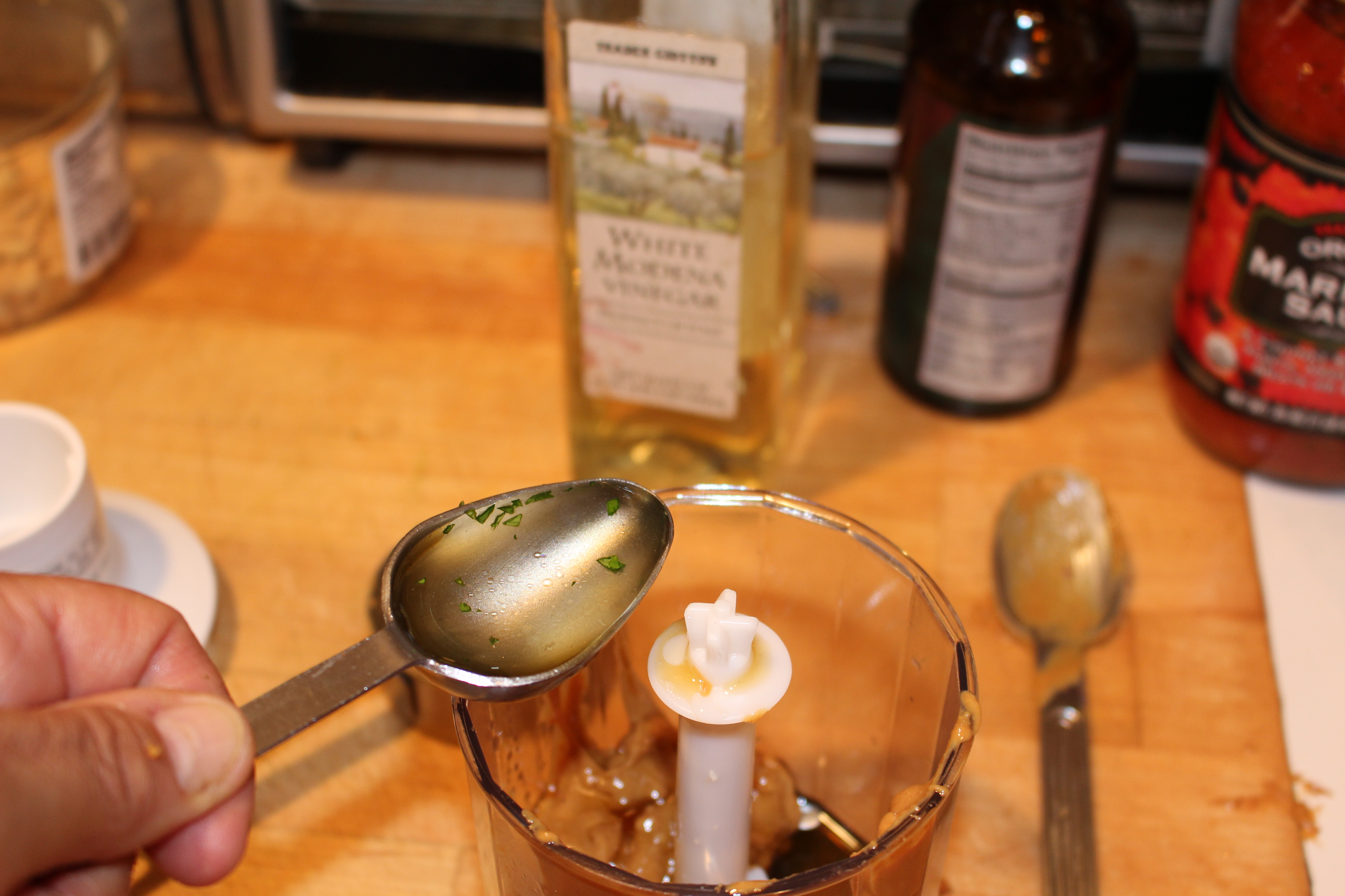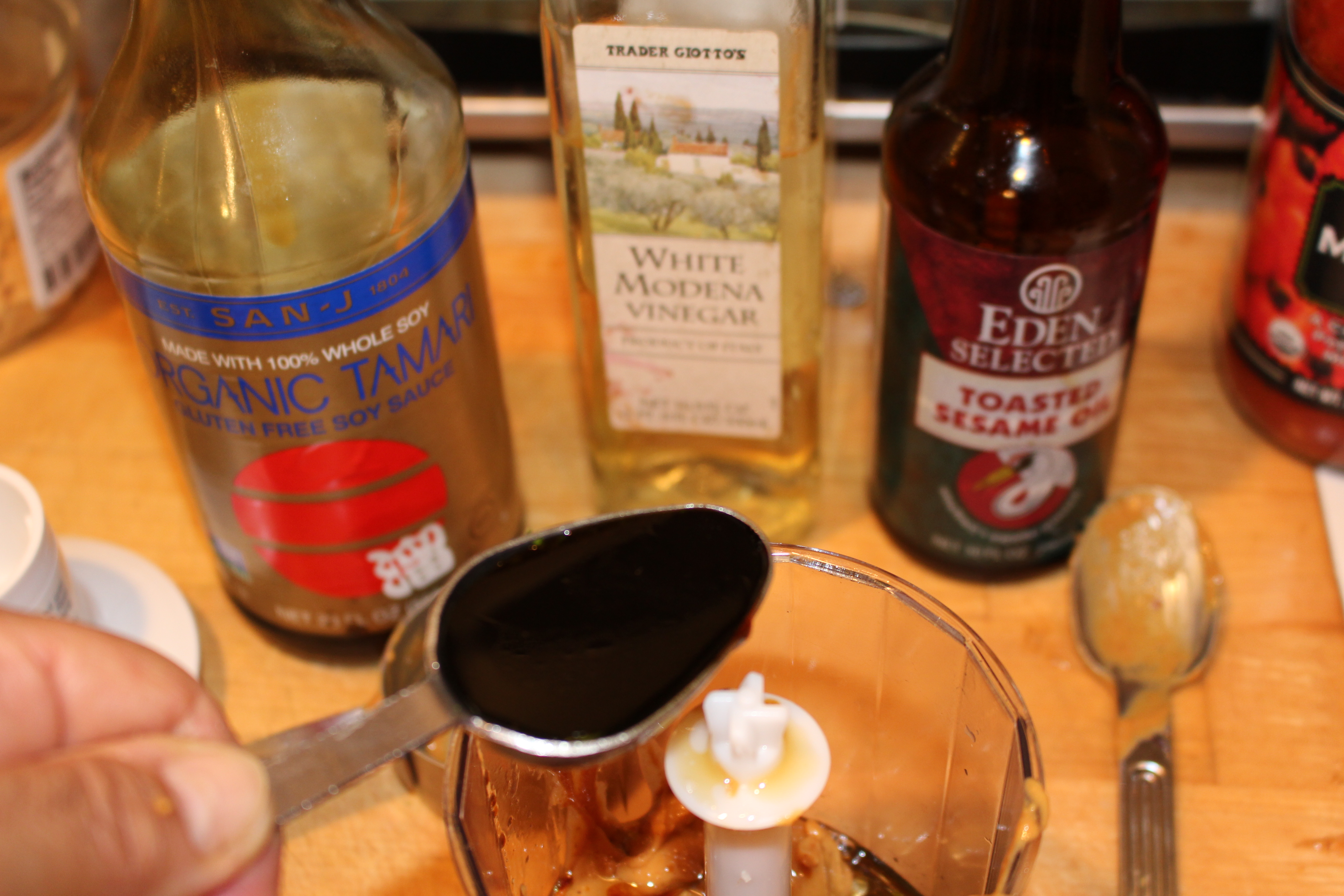 4. Make the dressing by combining all of the ingredients in a mini Food Processor.