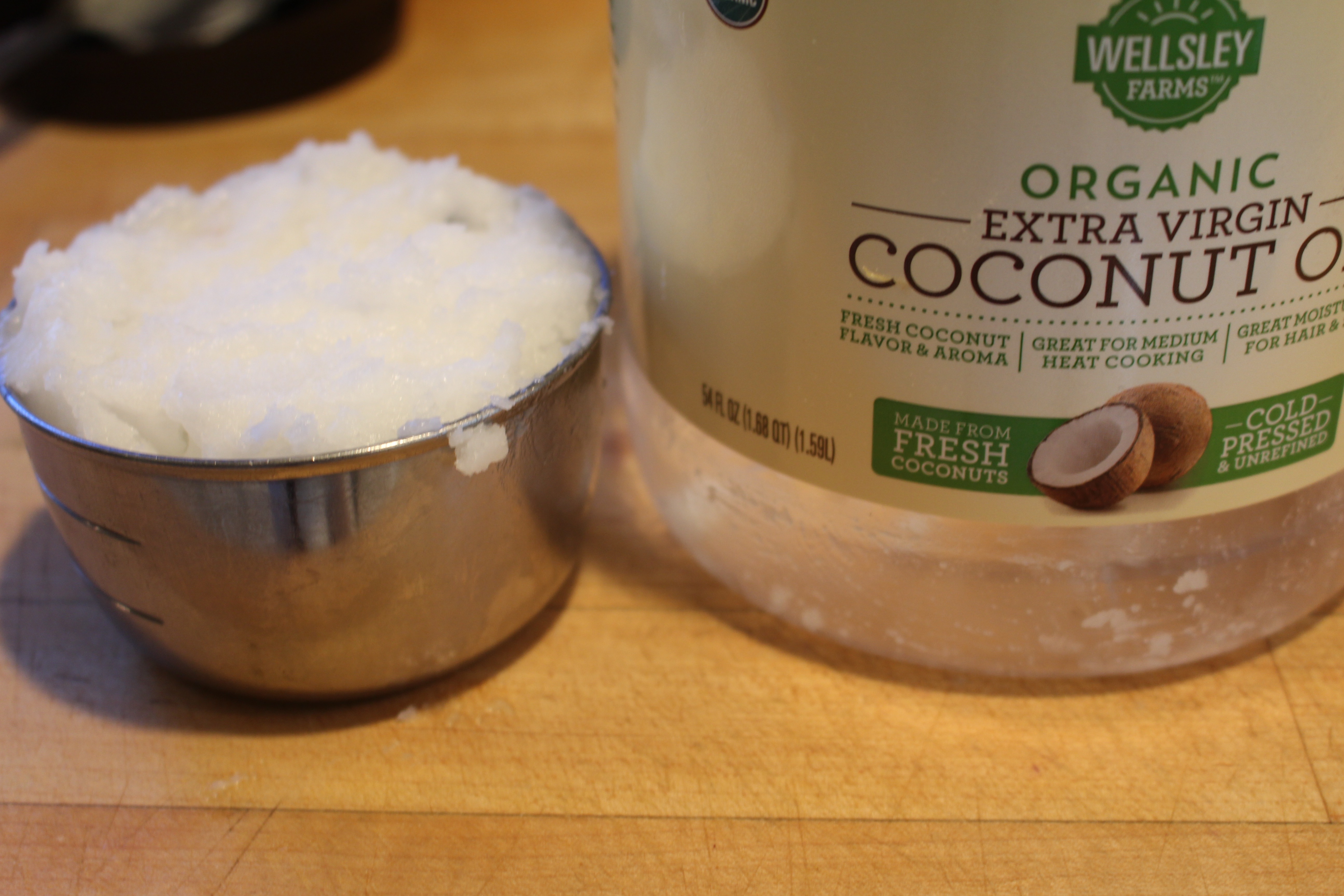 - Cream coconut oil, brown sugar and white sugar in electric mixer. Beat for 5 minutes. Then add apple cider vinegar, apple sauce and vanilla.