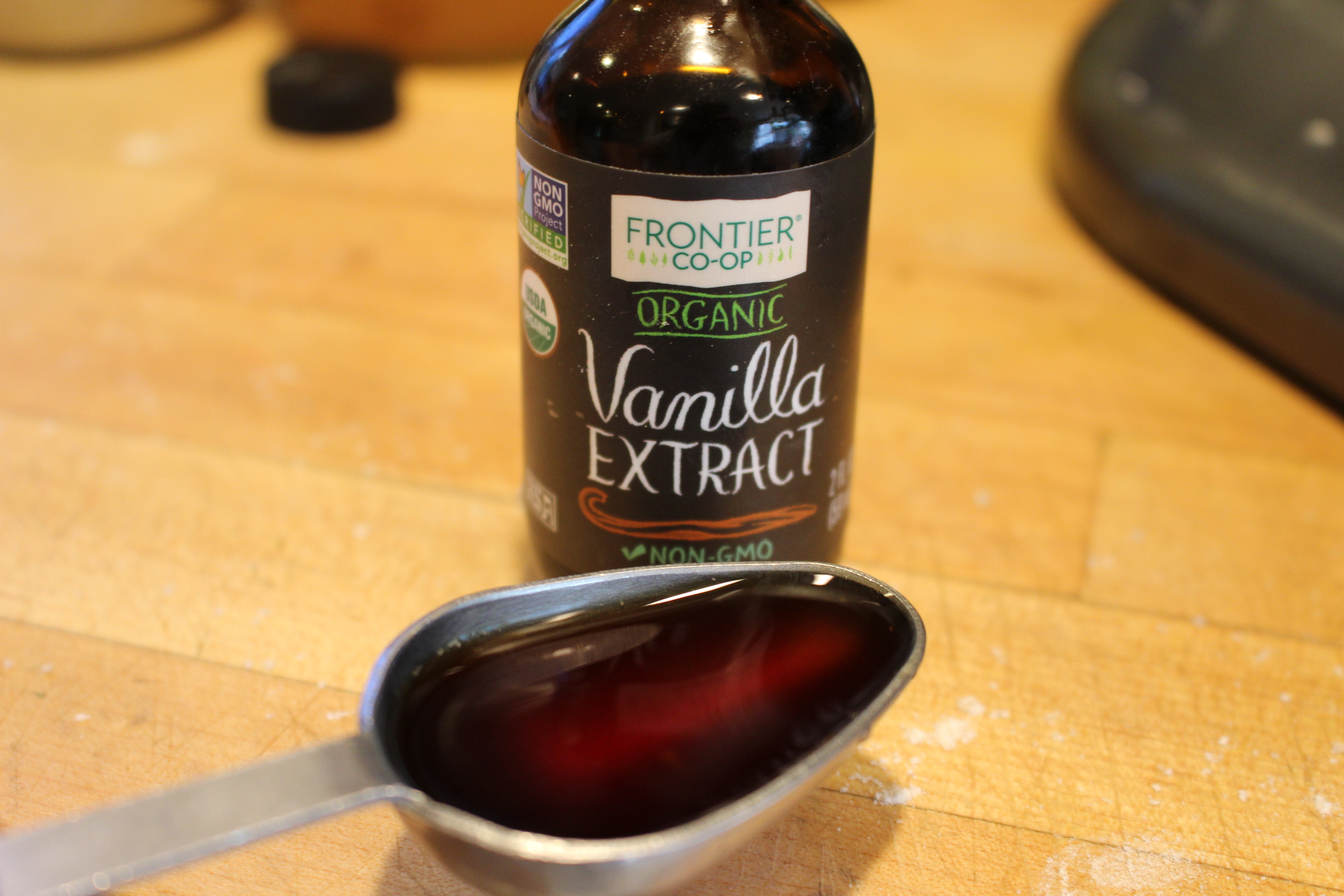 Beat for 5 minutes. Then add apple cider vinegar, applesauce, and vanilla.