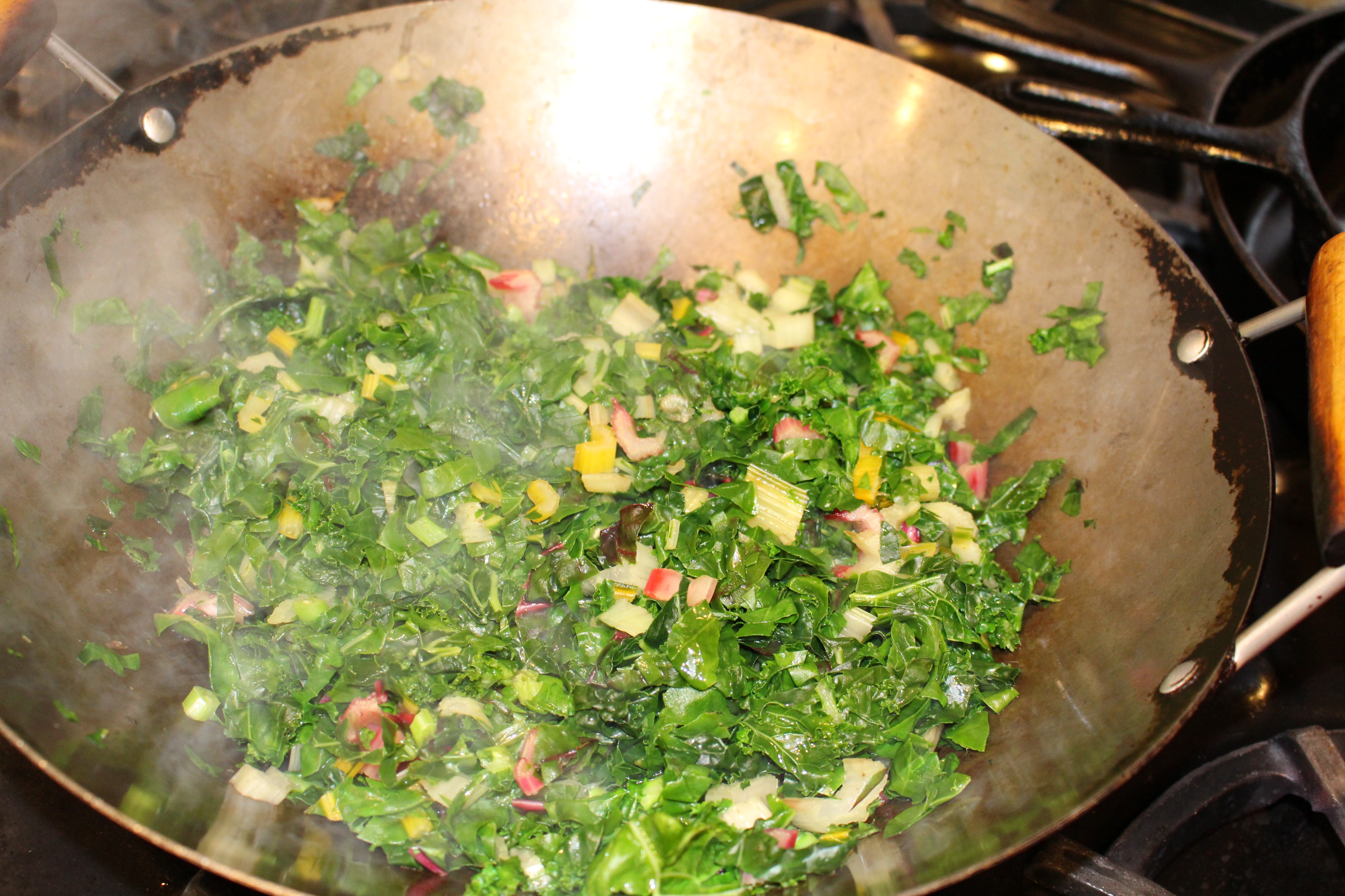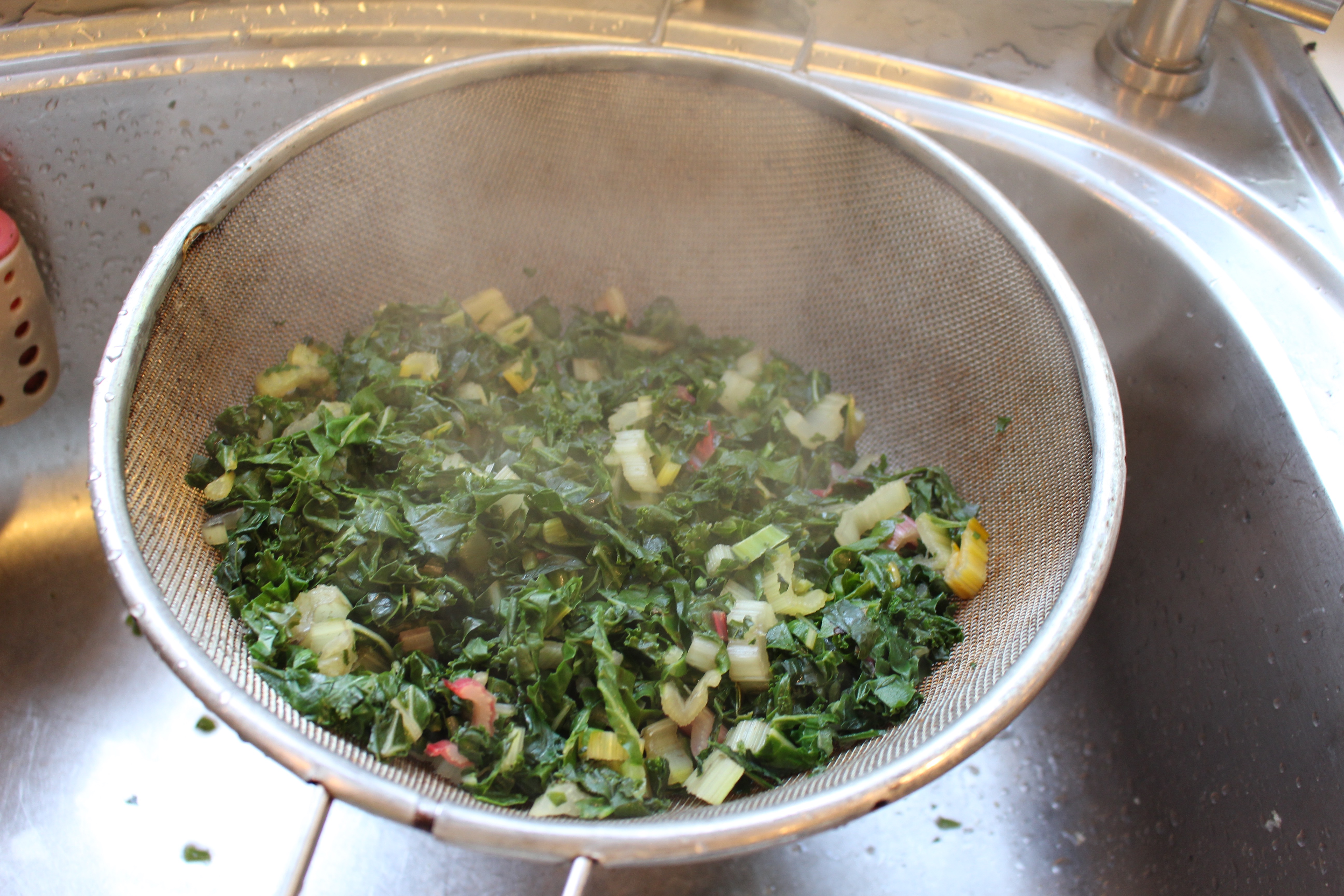 - 3 cups of cooked greens (kale and swiss chard), packed down with water squeezed out