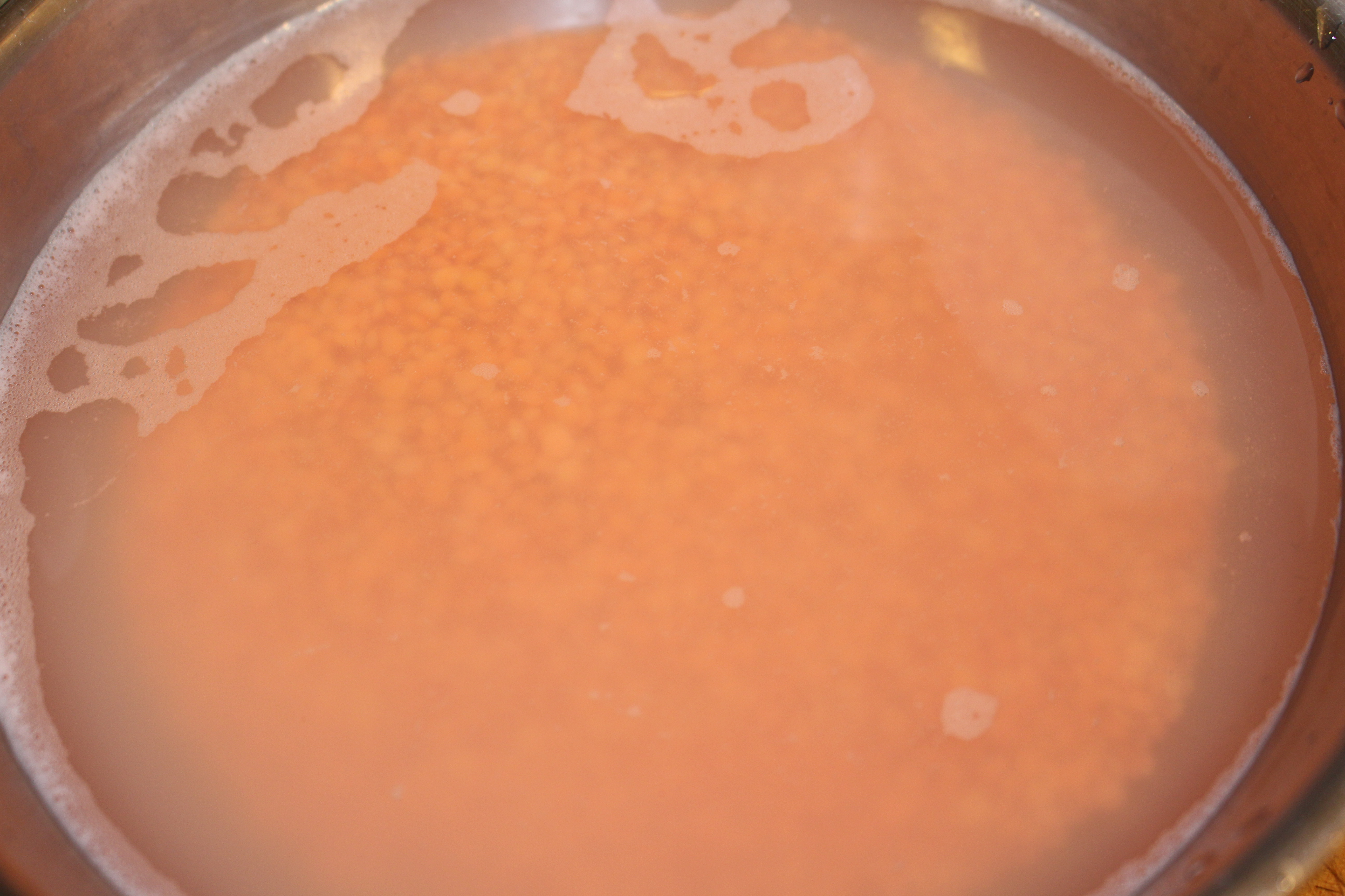 - Rinse the lentils and cover them with cold water. Then, set aside. Meanwhile, in heavy pot, sauté the onions and carrots in coconut oil for 5 minutes