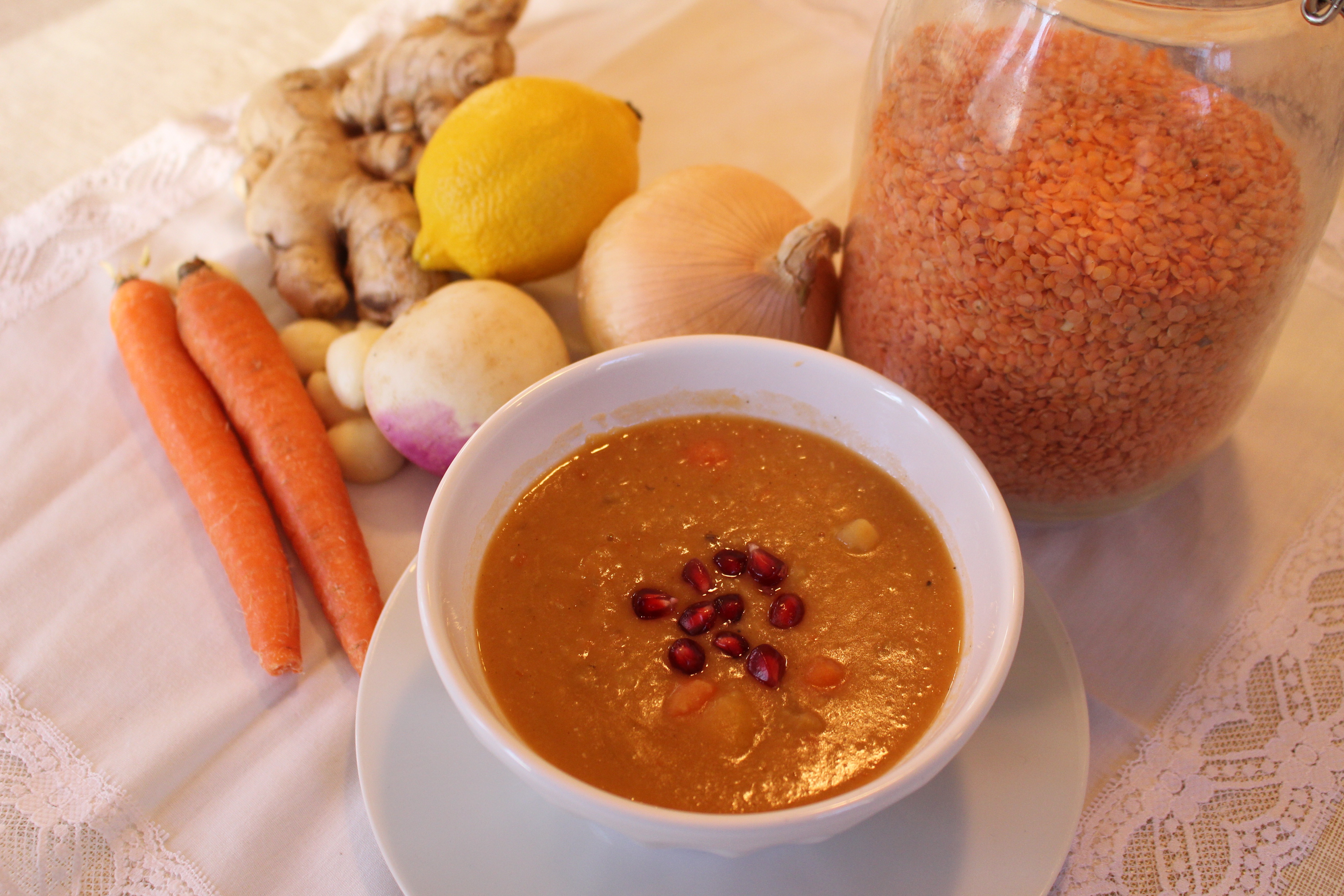 Red Lentil Soup with Pomegranate