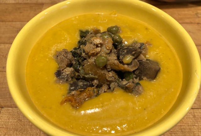 4. If a chunky soup is desired, you can add some of the leftover pumpkin stew to the soup!