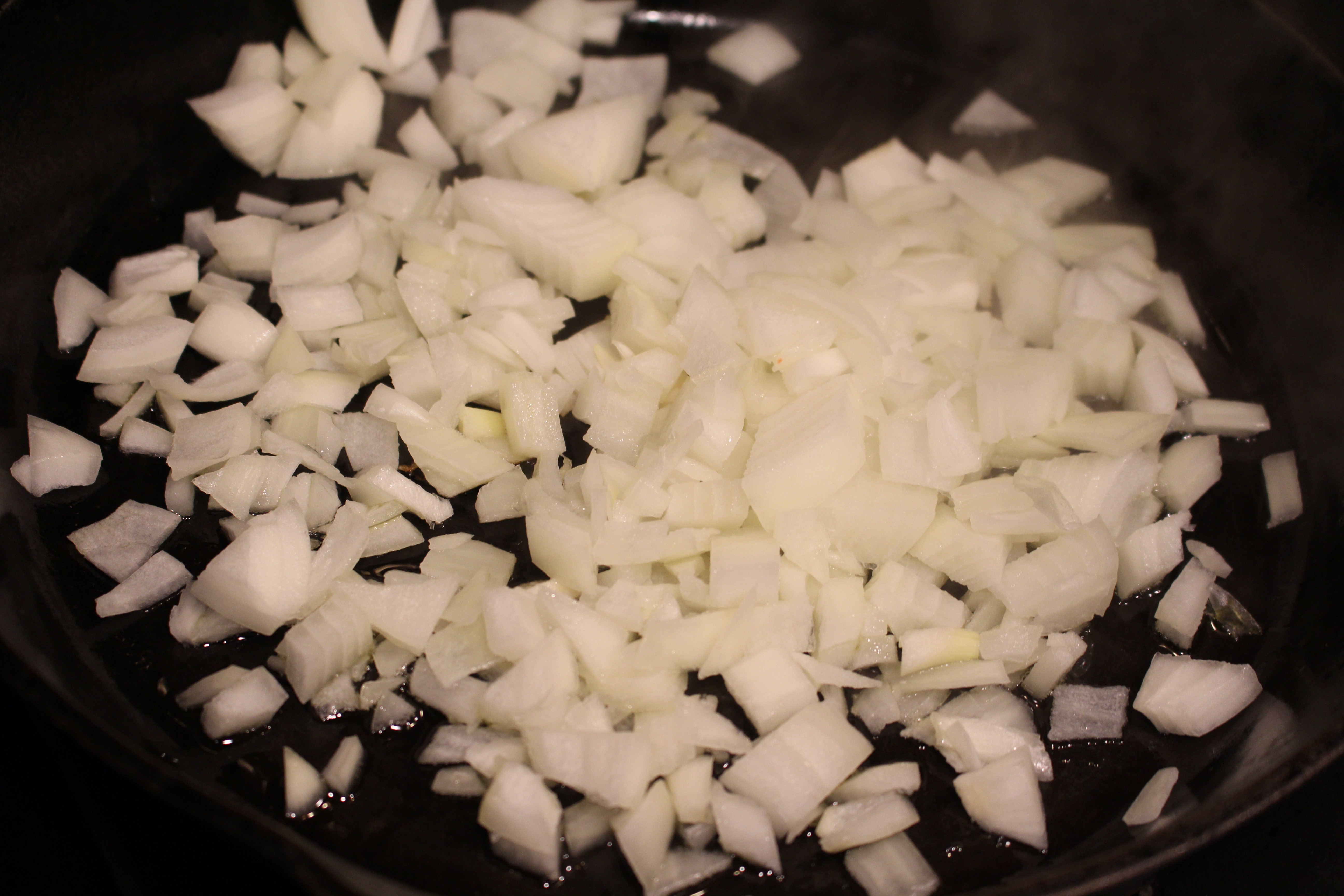 - Meanwhile, sauté onions until translucent then add peppers in olive oil. When soft add chili powder, chili peppers, cumin, and sauté another few minutes.