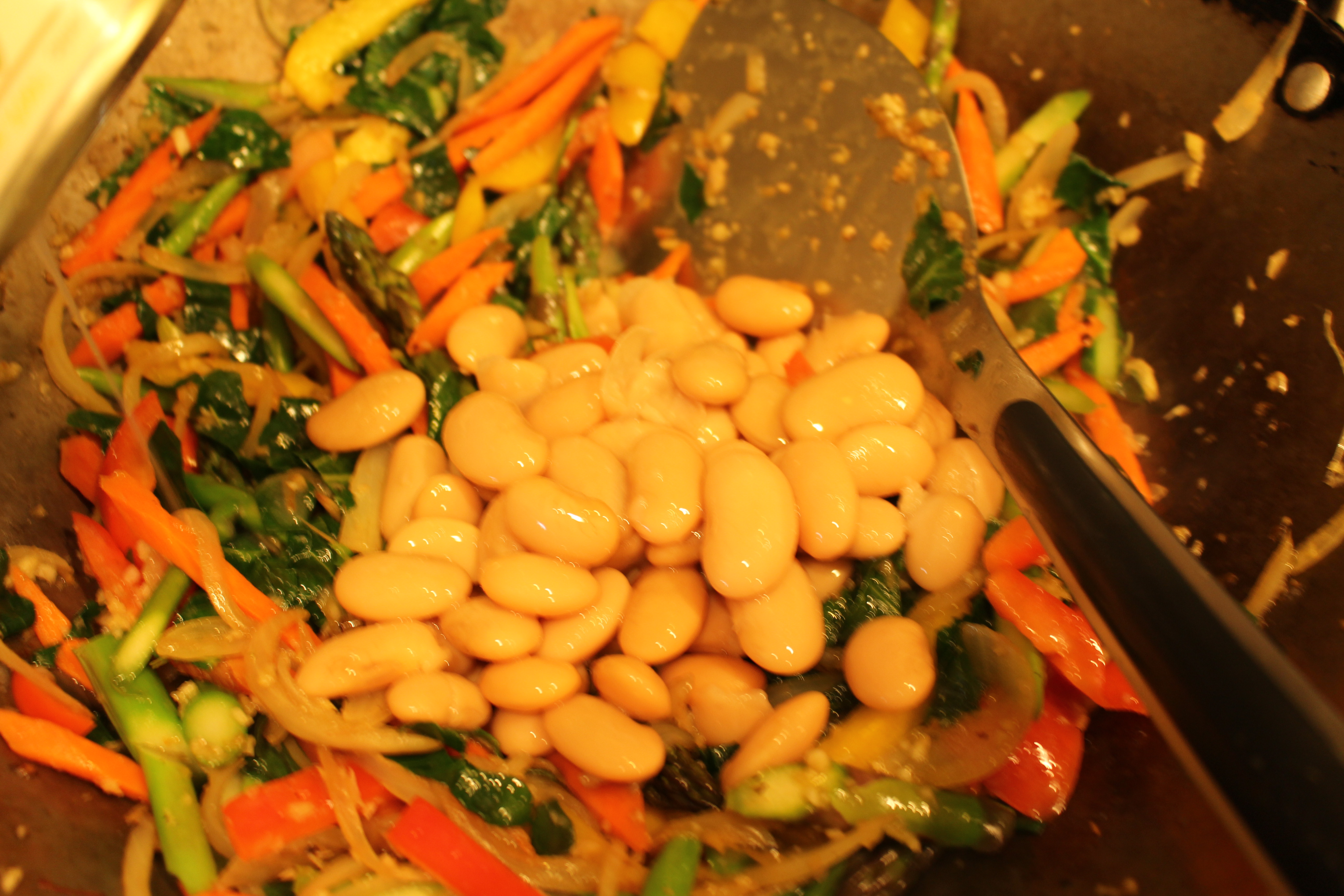 6. Add the beans and the pasta, and mix well until hot.