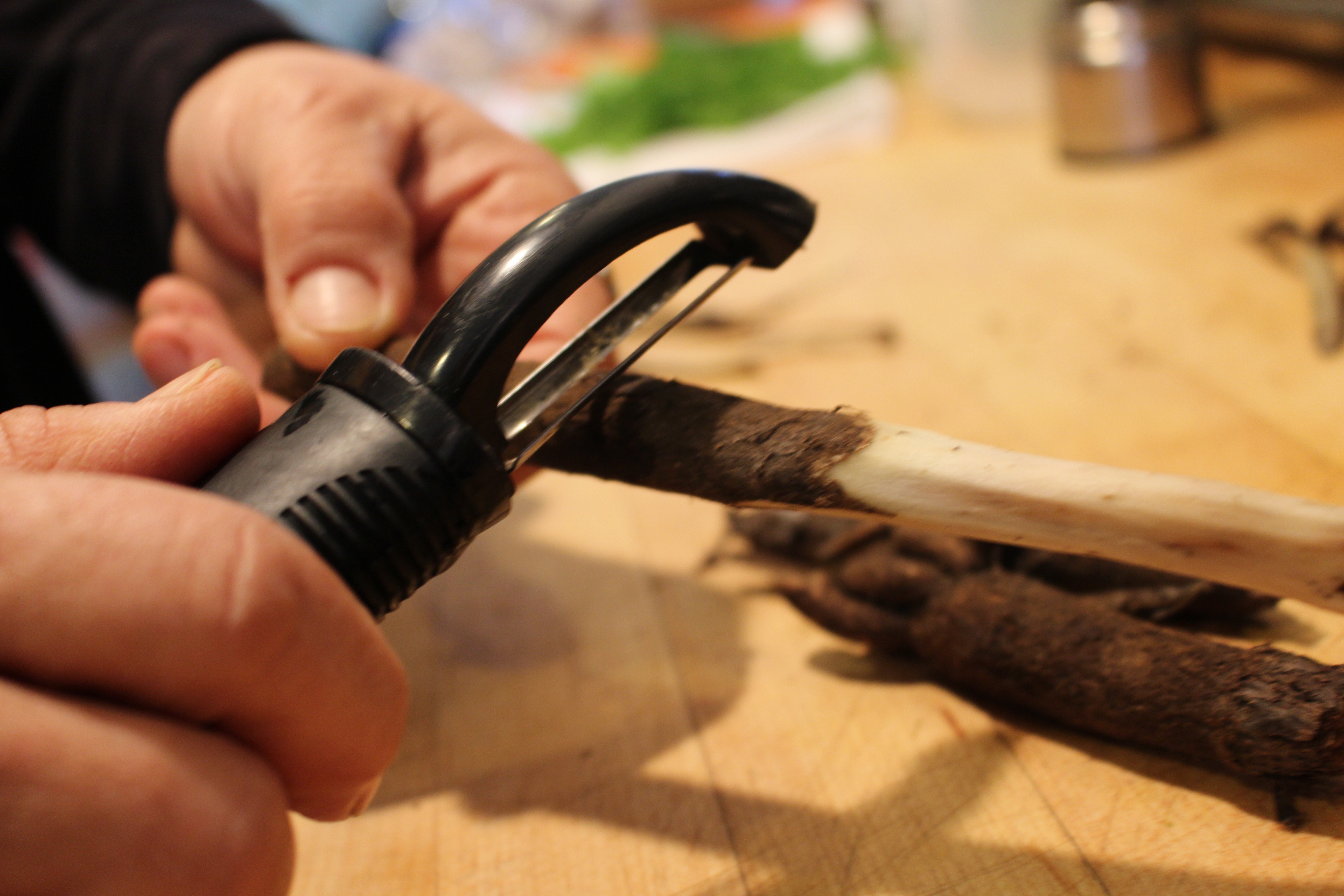 Meanwhile,in 2 Tbs olive oil, sauté burdock root on low flame for 10 minutes. Add onions and sauté another 5 minutes.