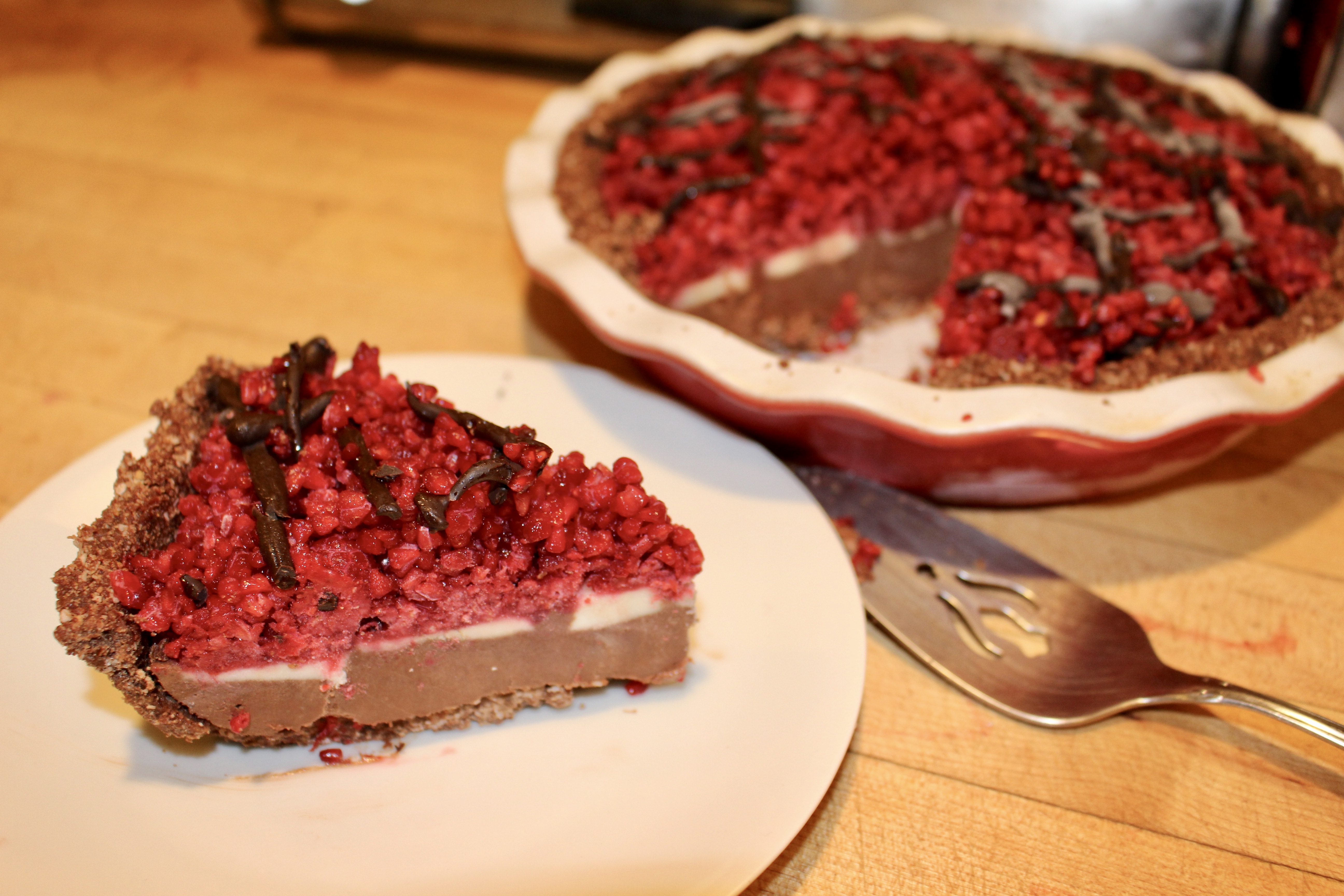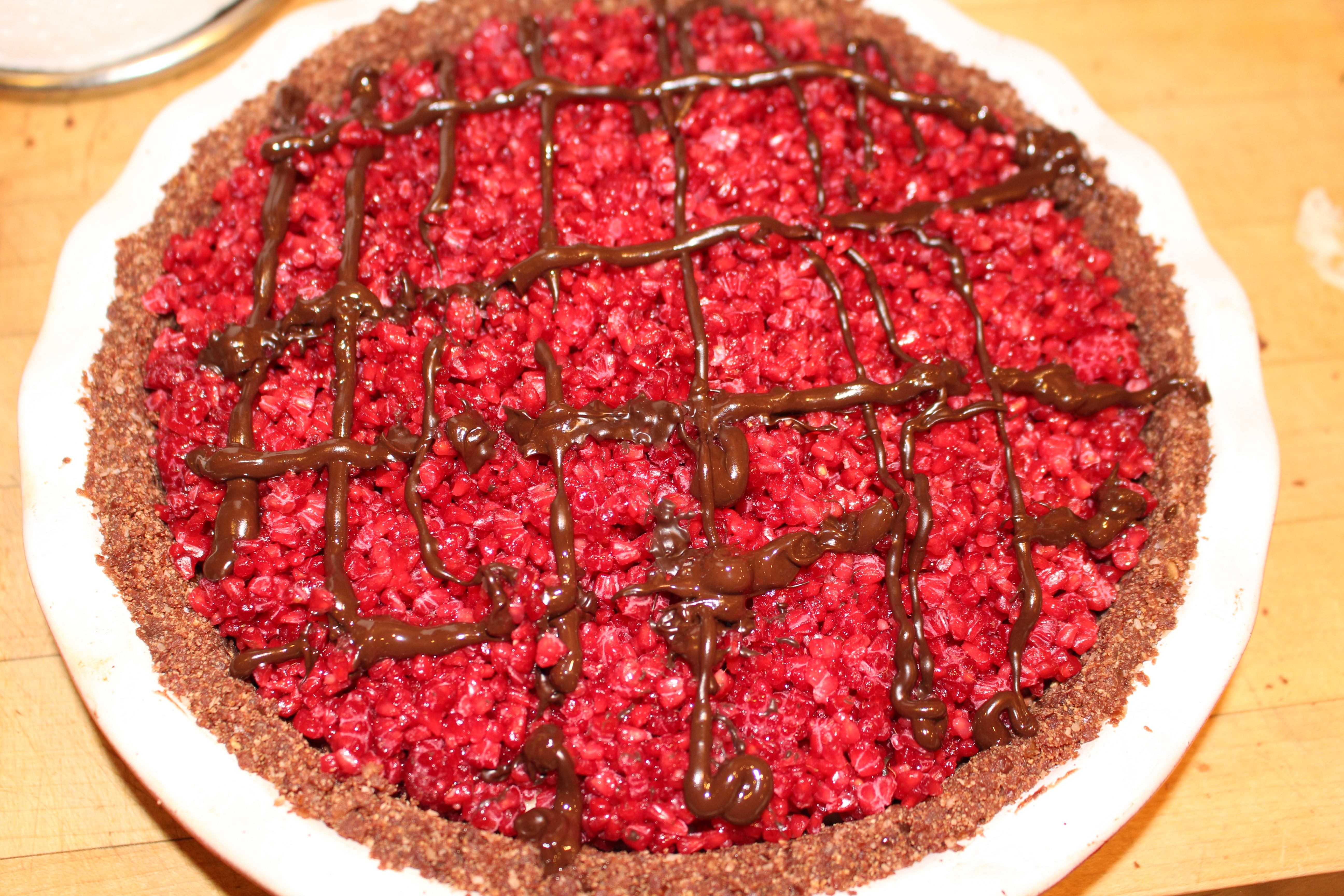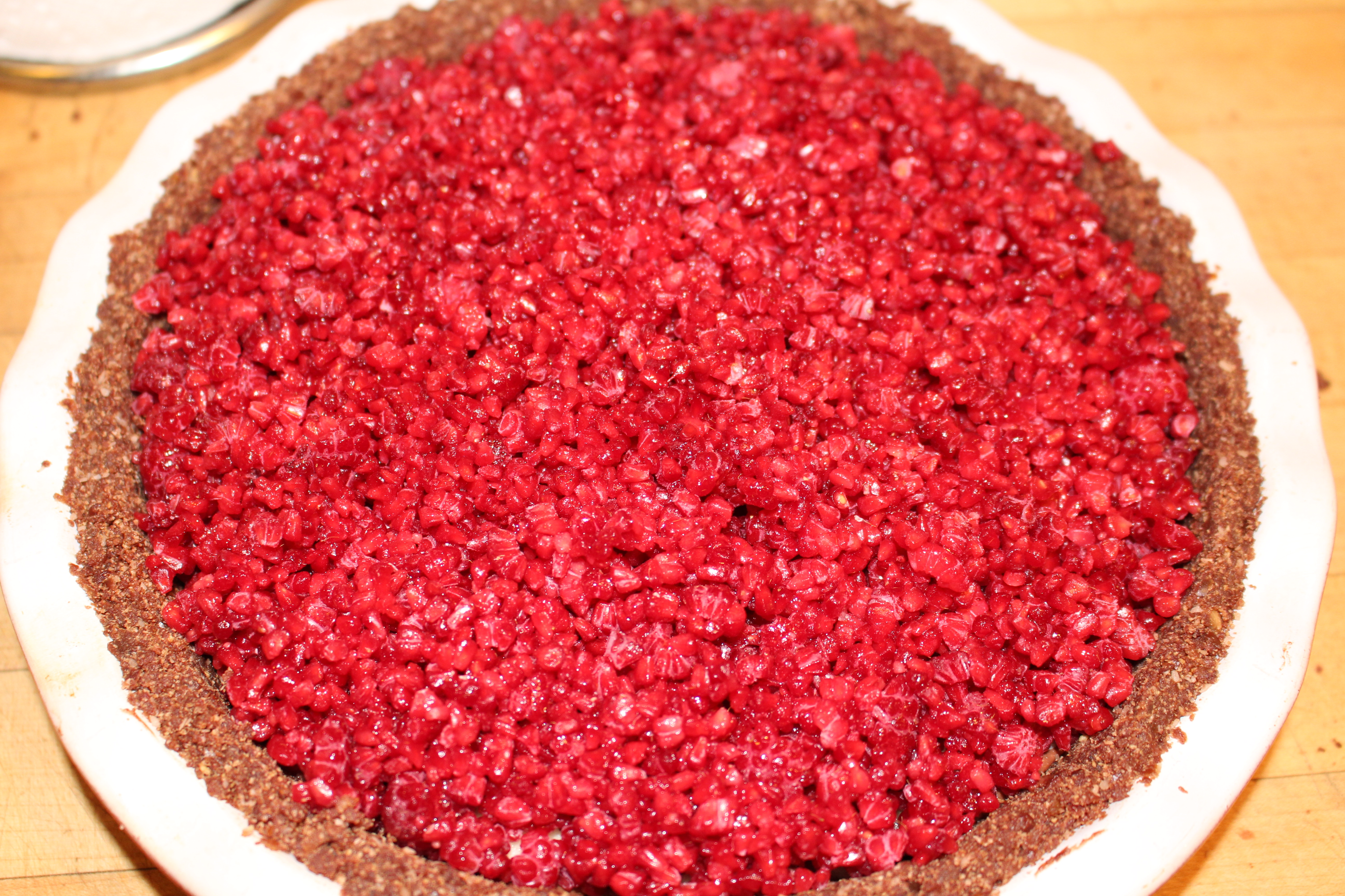 - Add the maple syrup and pulse just to combine. Top the pie with the raspberries mixture and fresh raspberries if you desire.