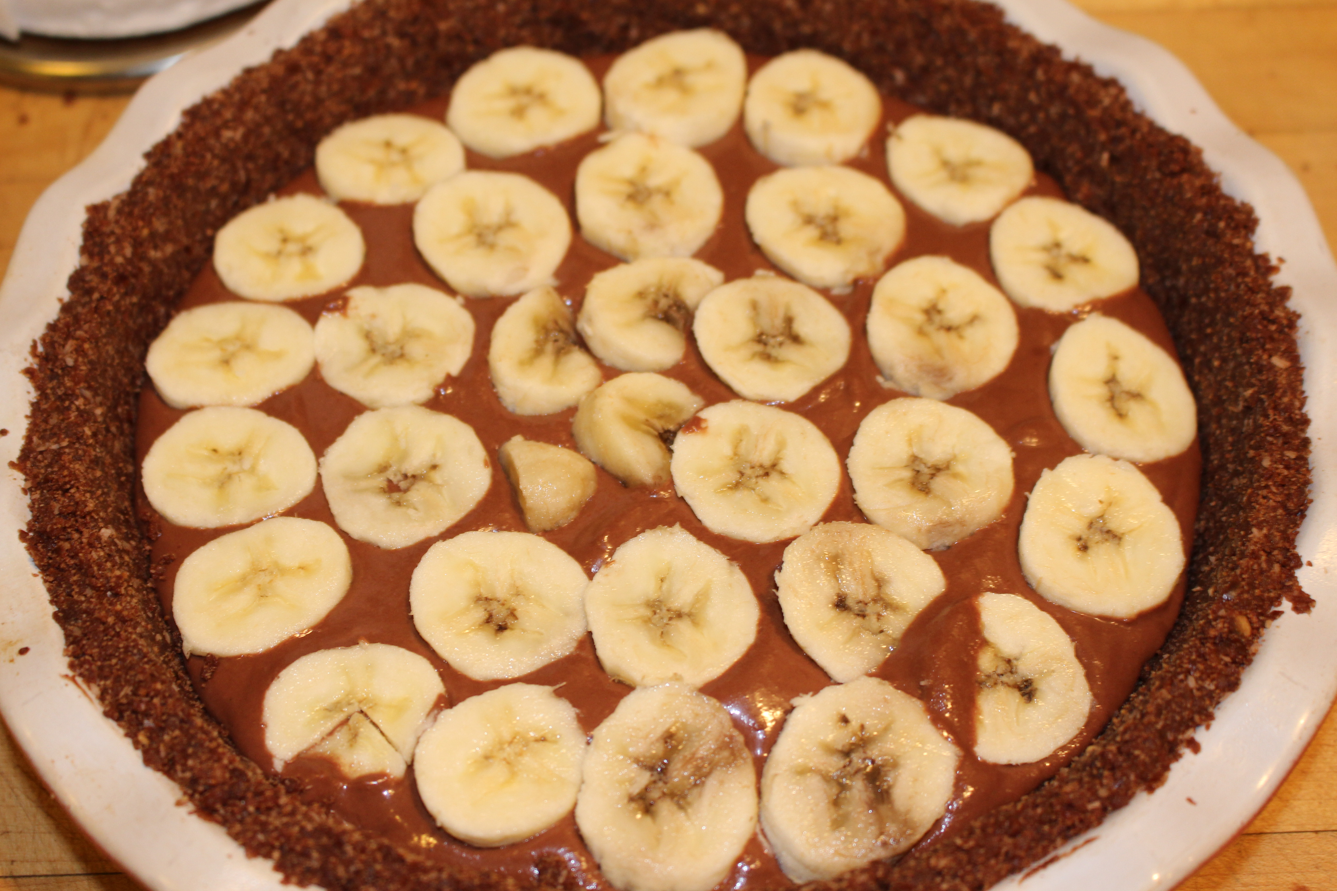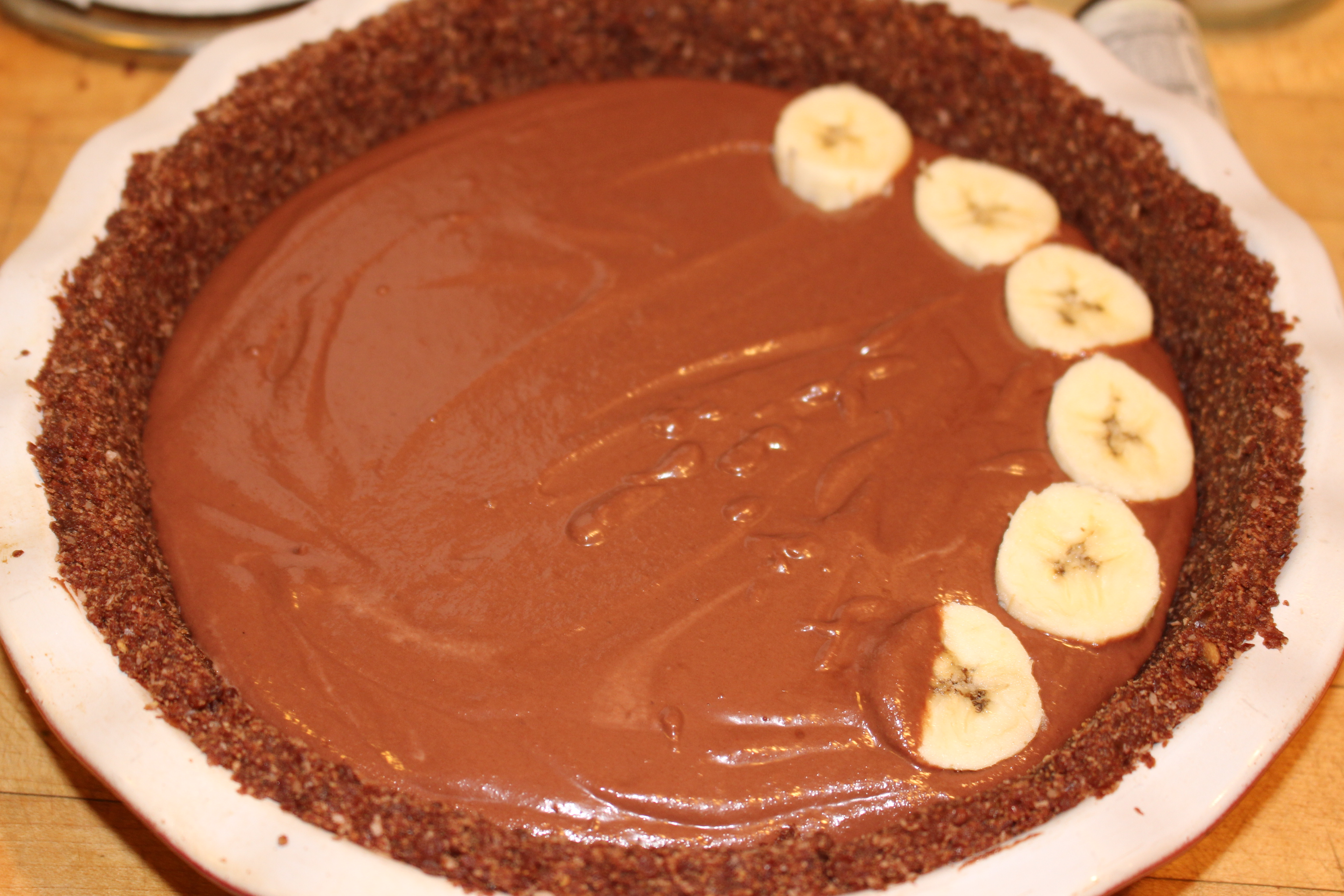 - Combine all of the ingredients for the chocolate drizzle in food processor or mini blender. Put chocolate into a plastic squeeze bottle, and decorate the top of pie with chocolate.