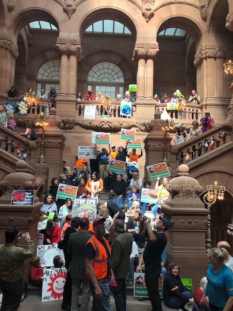 While in Albany, I learned about the CPV Valley Power Plant, which is a massive fracked gas plant, which is being built in Orange County, just 60 miles outside of NYC. According to Cornell scientists, this one plant will increase our greenhouse gas emissions by at least 10%, and if you figure in the leakage rate, which always happens, it will release over 20 million tons of CO2 into the atmosphere annually. This is huge!!! Along with methane, which is 4x more toxic than CO2, it will emit toxic chemicals and radio active particles that will impact everyone’s health who is living within a 30-50 mile radius, not to mention the effects it will have on the food and dairy farms nearby. Being close to the Croton Reservoir, it has the potential to contaminate the drinking water of all of New York City! And why was this permitted? It seems there was a bribery scheme between the CPV executives and one of Cuomo’s closest aides, who already pleaded guilty. So it would seem to reason that Cuomo would stop this power plant in its tracks, before the damage is done, but he has not made a move in that direction. We need the power of the people to make that happen. Monday was a start, but we need everyone to make a call. Please call Governor Cuomo’s office at 518-474-8390, and tell him to stop the construction of the CPV Power plant, or we will vote him out of office!